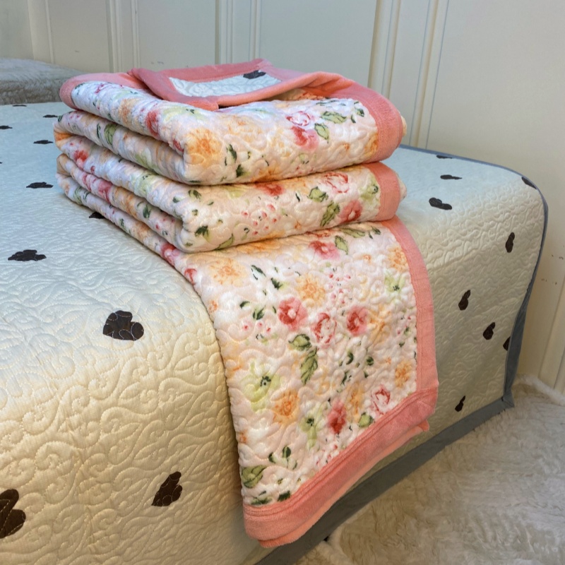 商品名称:梦精灵 2025新款经典款牛奶绒多功能盖毯床盖 直角-花飘香