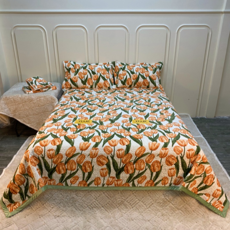 梦精灵 2025新款经典款牛奶绒多功能盖毯床盖 直角-郁金香
