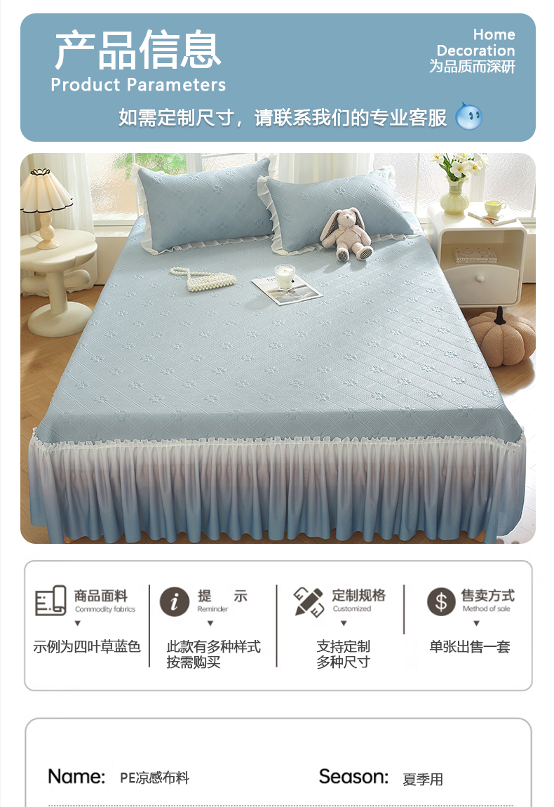 商品名称:共鸣沙发垫 2025新款凉感四叶草床裙款凉席席子 床裙四叶草绿色