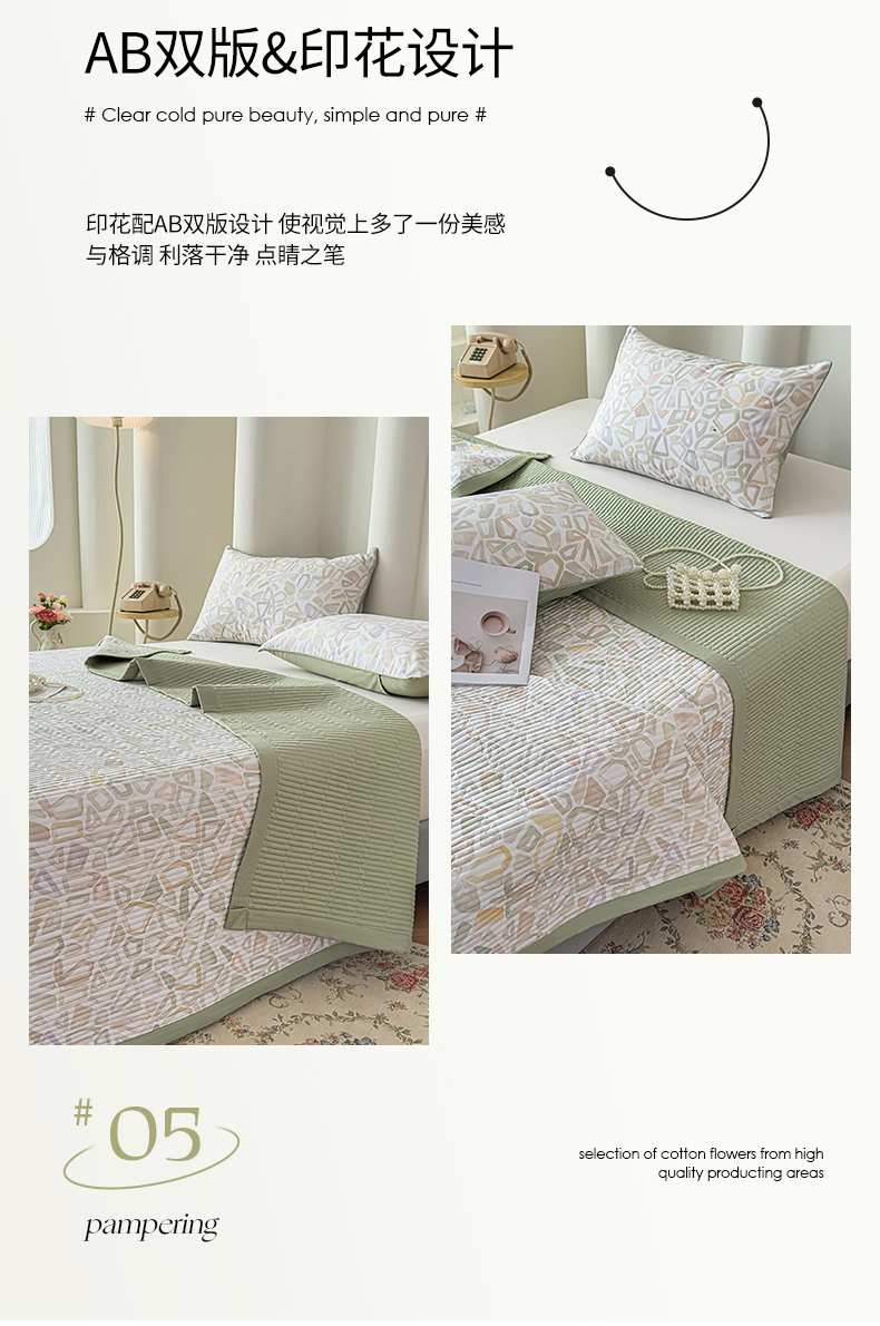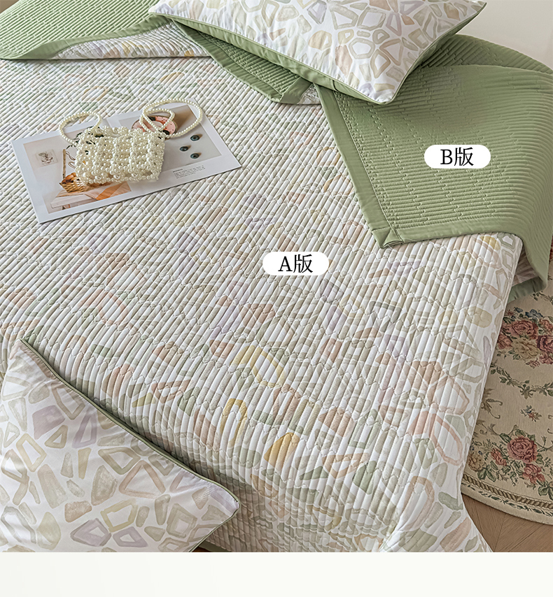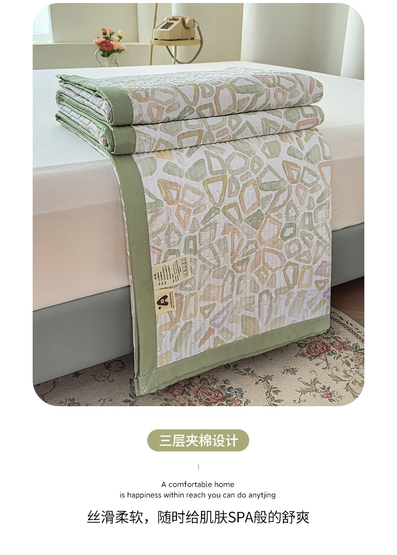 • 91家纺网 家纺一手货源 找家纺 恒尚居 2025新款A类莱赛尔天丝棉印花床盖-自由几何 自由旋律-绿意