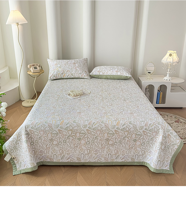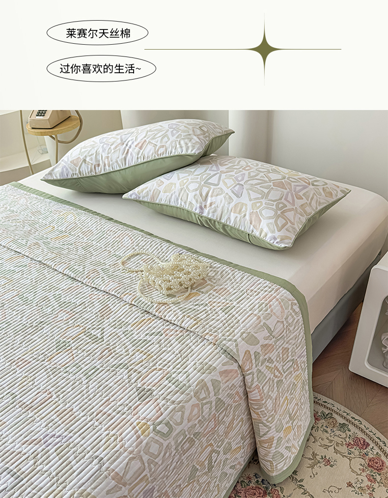 恒尚居 2025新款A类莱赛尔天丝棉印花床盖-自由几何 自由旋律-绿意