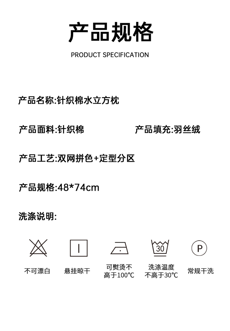 商品名称:(总)蝶飞舞 2025新款枕芯透气针织棉3D按摩蜂窝枕头枕芯 48*74cm