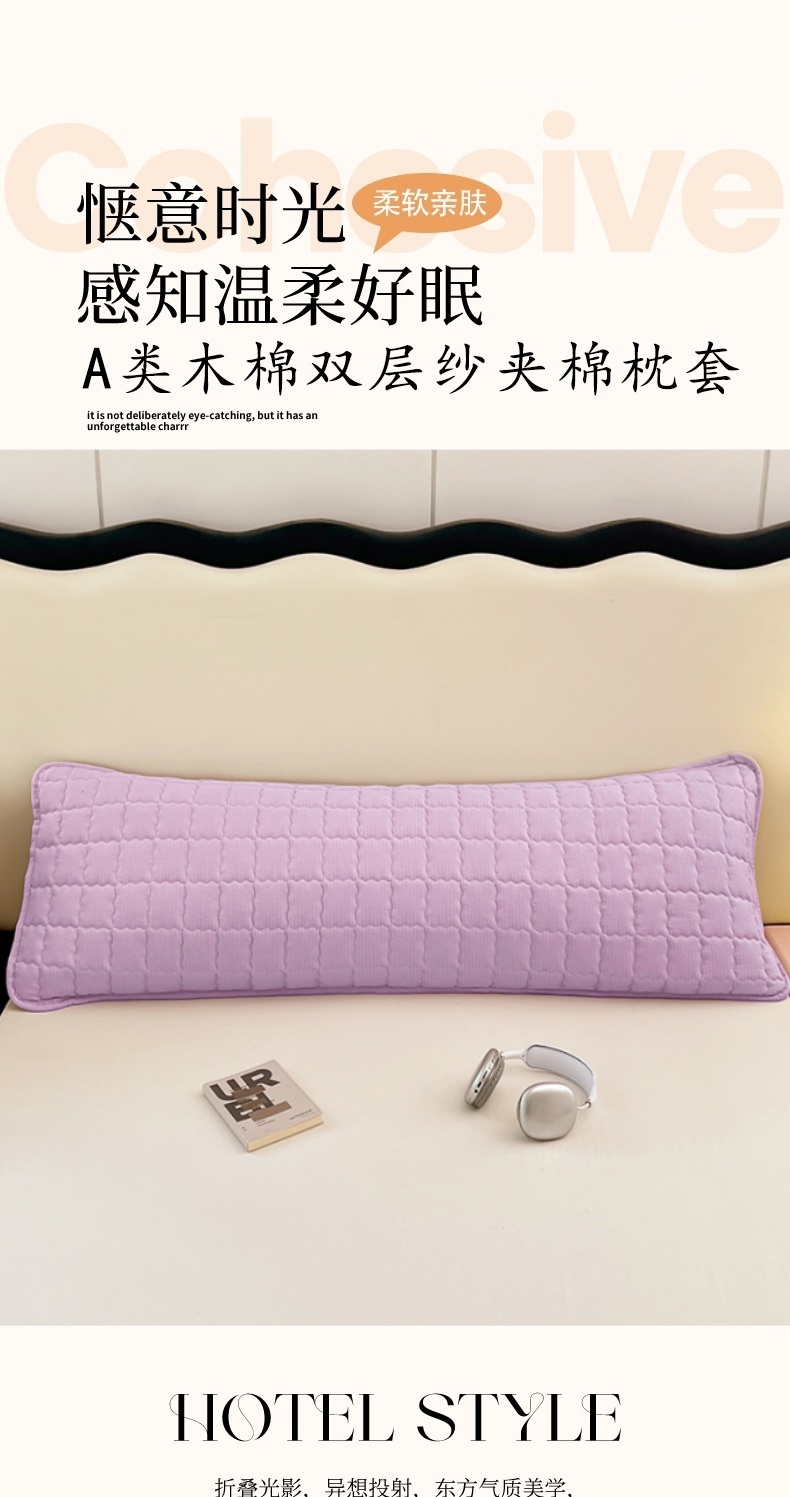 商品名称:圣比熊 2025新款云感双层纱夹棉双人枕套情侣1.5m枕芯套1.8床加厚枕头套 暮山紫