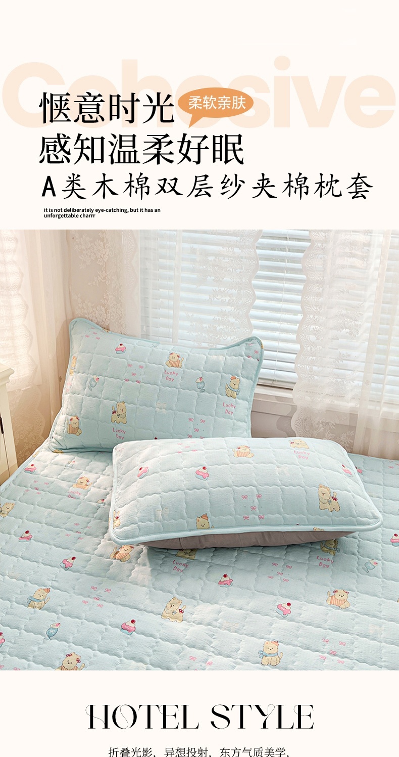 商品名称:圣比熊 2025新款云感双层纱夹棉枕套宿舍单人枕芯套一对装加厚枕头套 甜心小狗