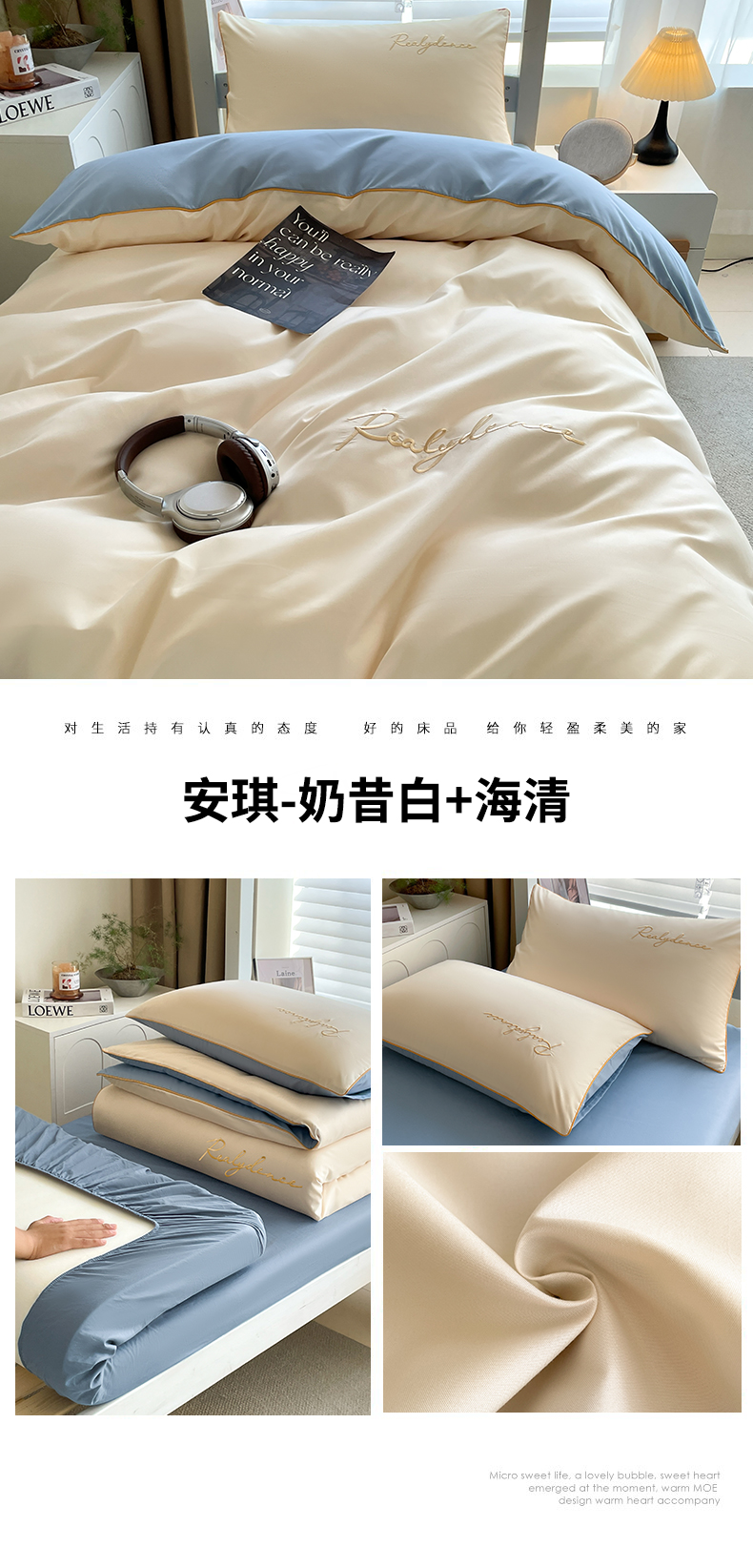(总)小久久 2024新款A类纯棉刺绣四件套-克洛伊,繁星蓝,奶昔白+奶茶,奶昔白+奶油粉,奶油粉