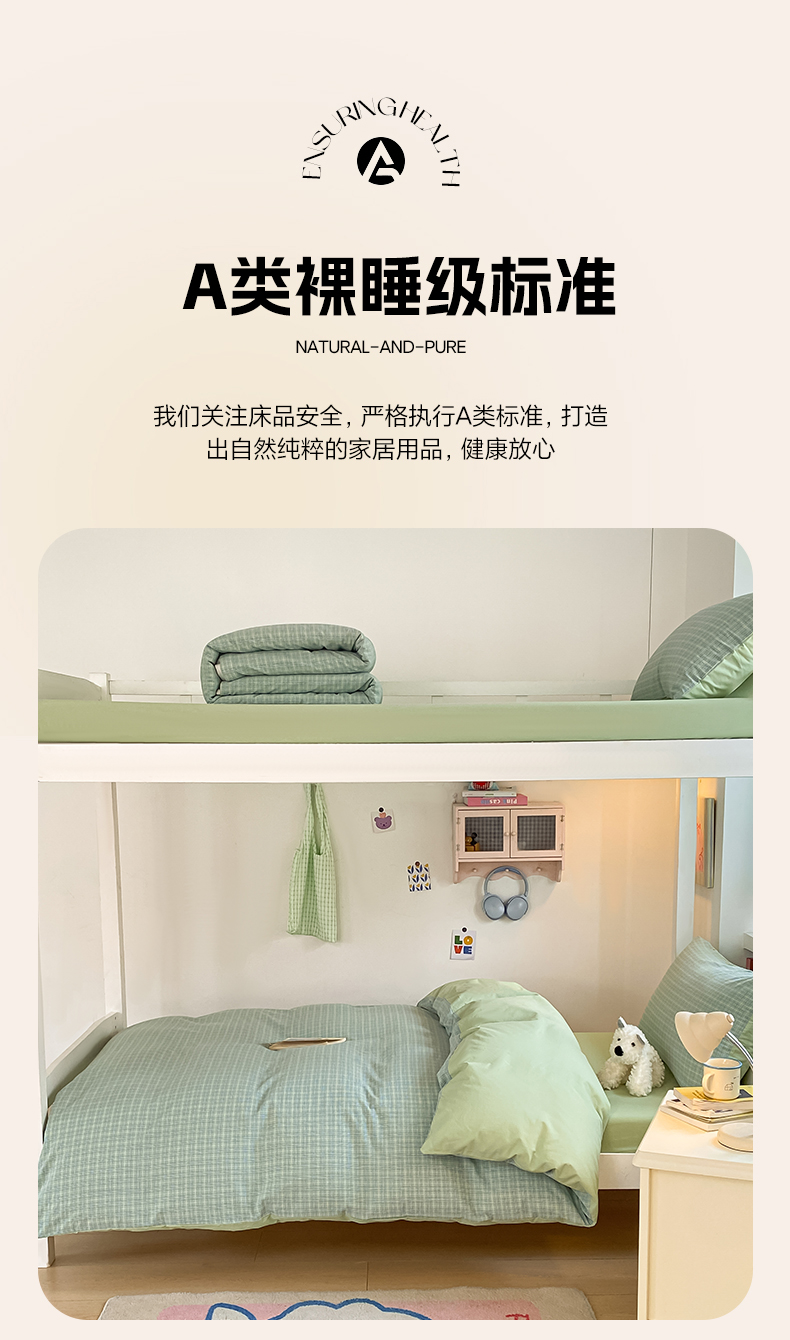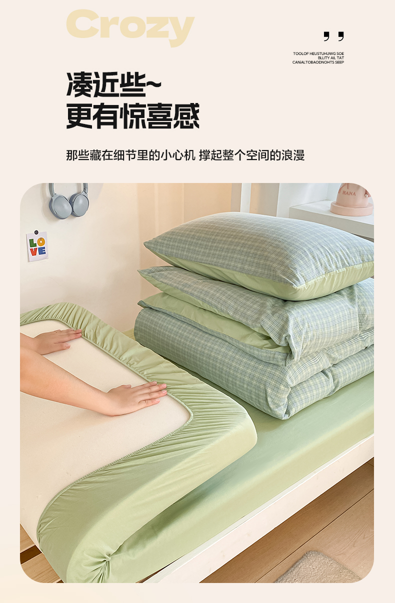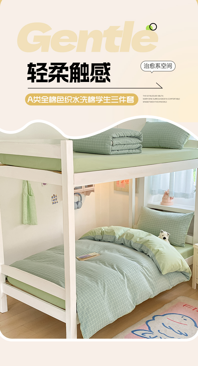 当前位置: 91家纺网 > 商品网购 > 床品套件 > 三件套 > 寐居家纺 2025新款亲肤舒适全棉纯棉色织水洗棉学生三件套 莫尼-绿