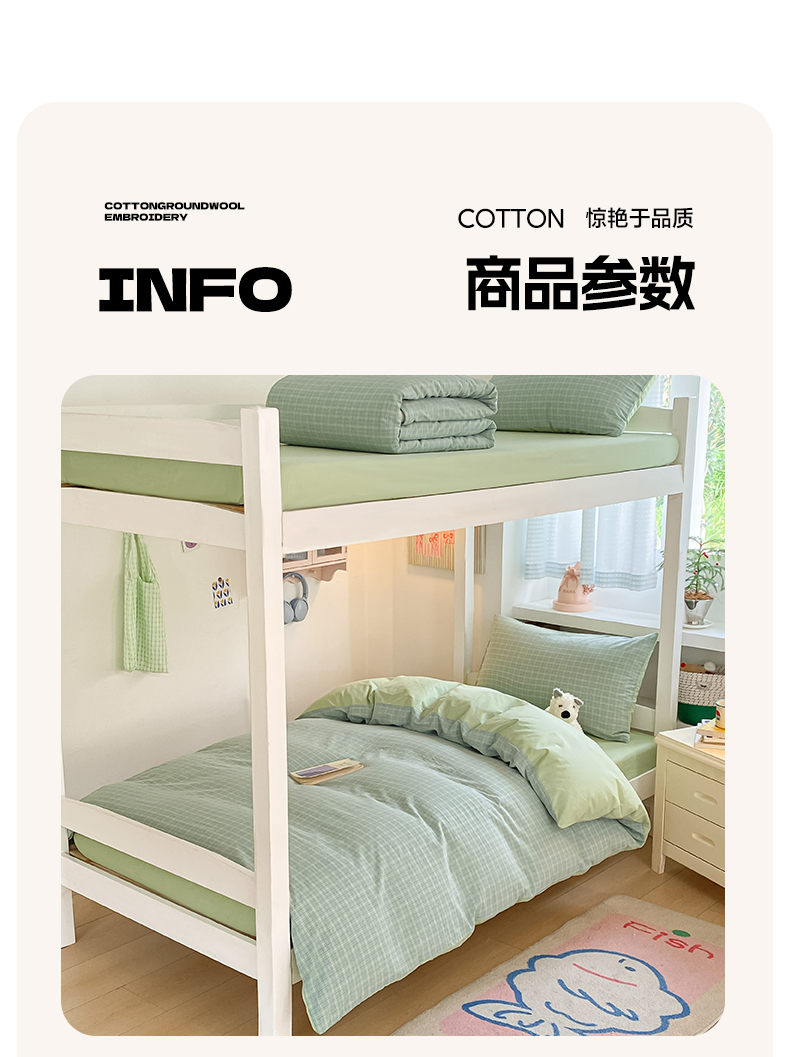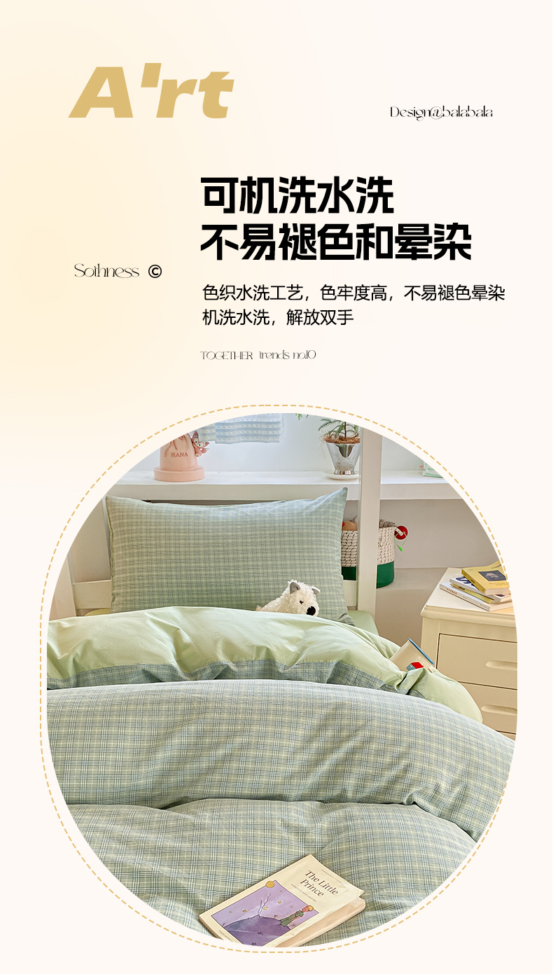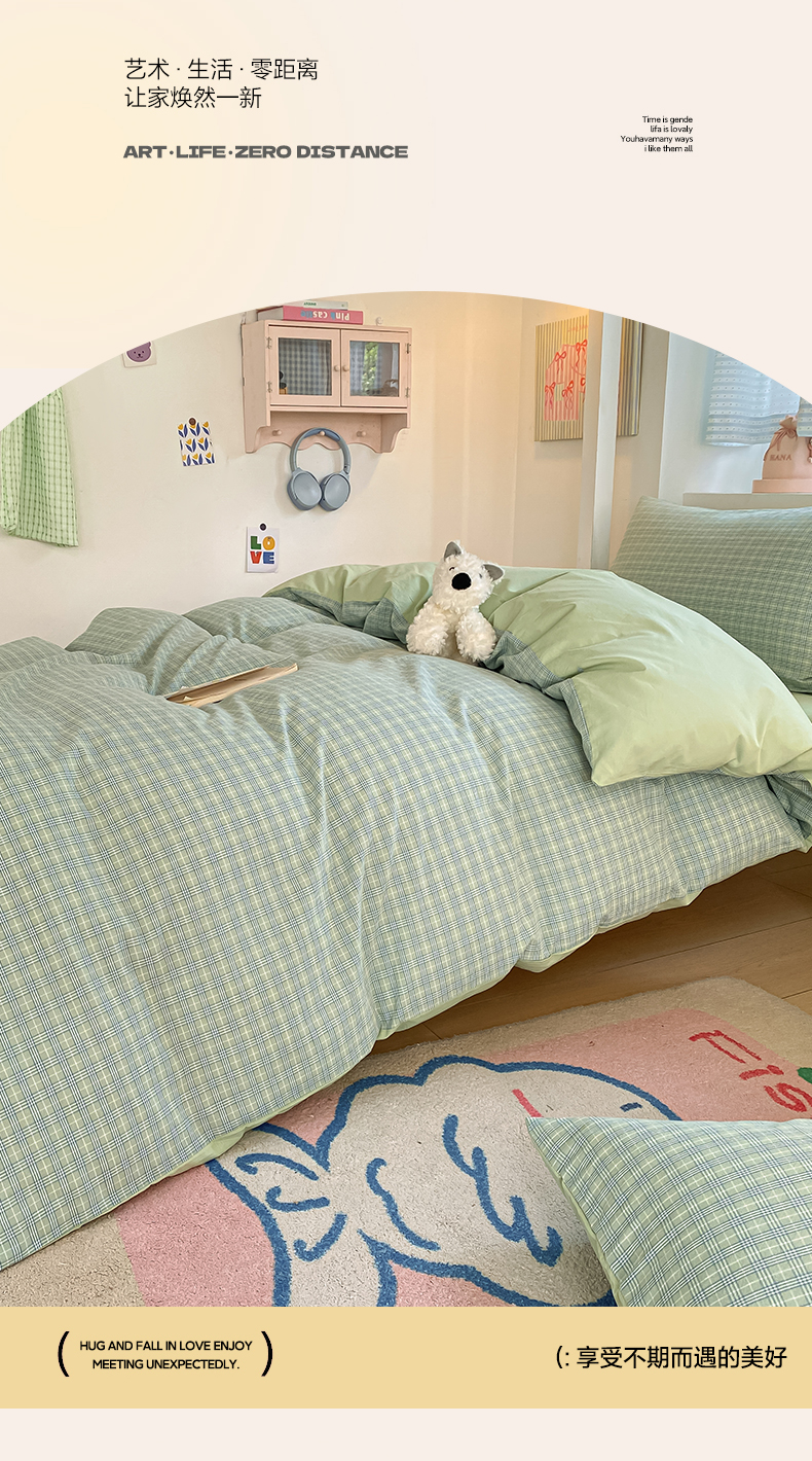 当前位置: 91家纺网 > 商品网购 > 床品套件 > 三件套 > 寐居家纺 2025新款亲肤舒适全棉纯棉色织水洗棉学生三件套 莫尼-绿