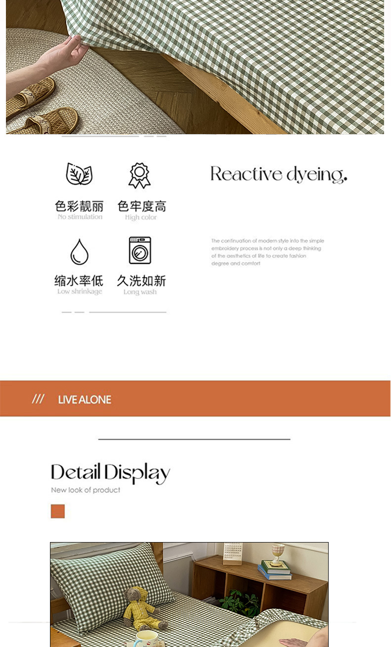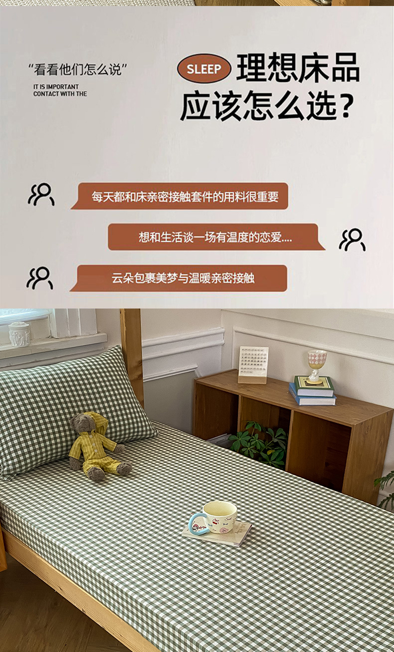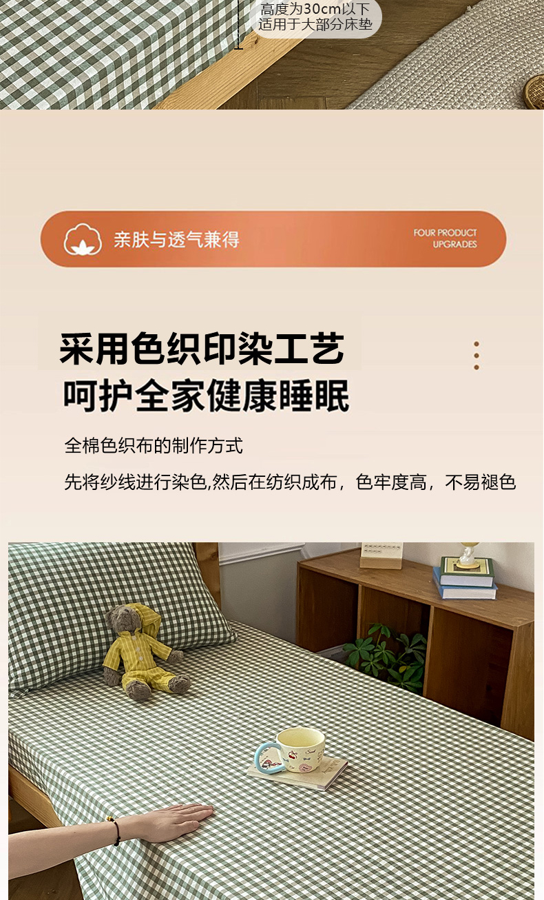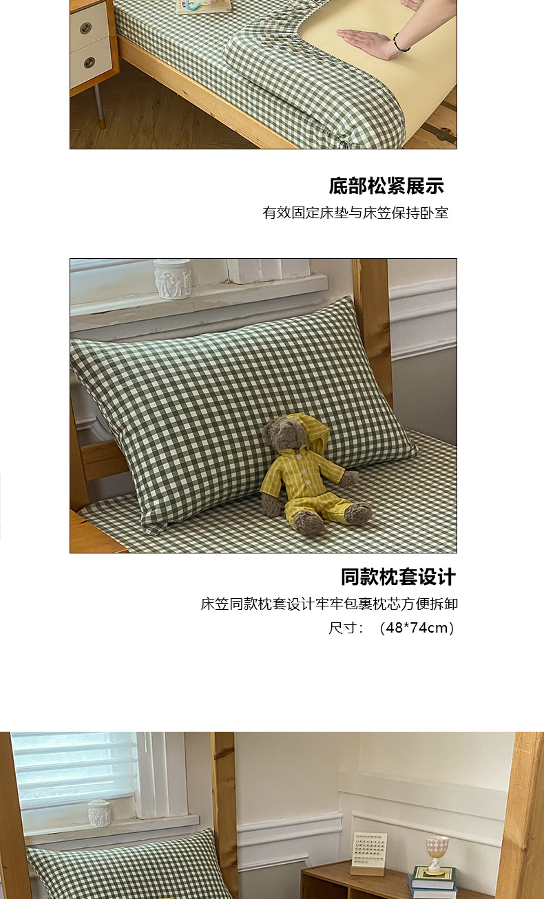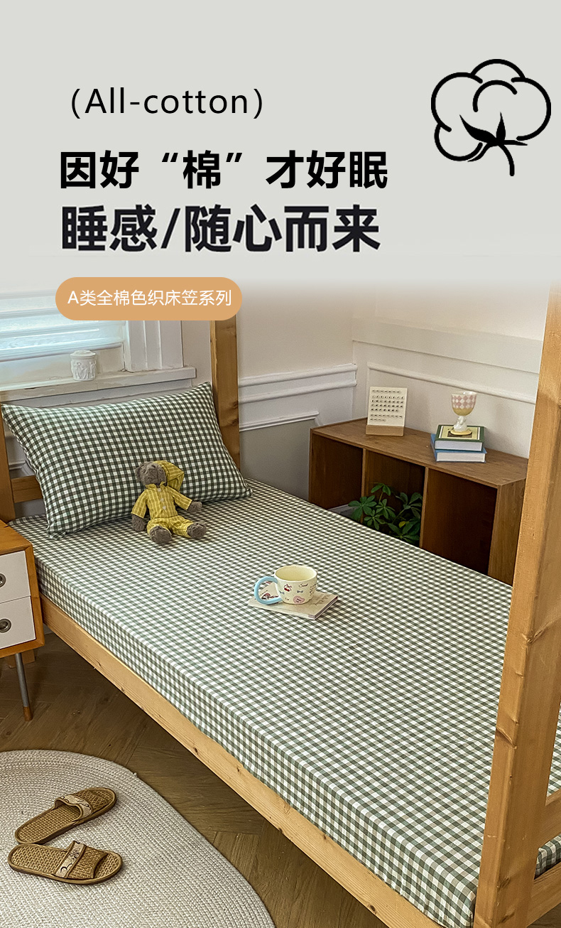 恋人优选 2025新款儿童学生宿舍上下铺全棉纯棉色织床笠单品单床笠床笠单件-无标款系列二 小绿格