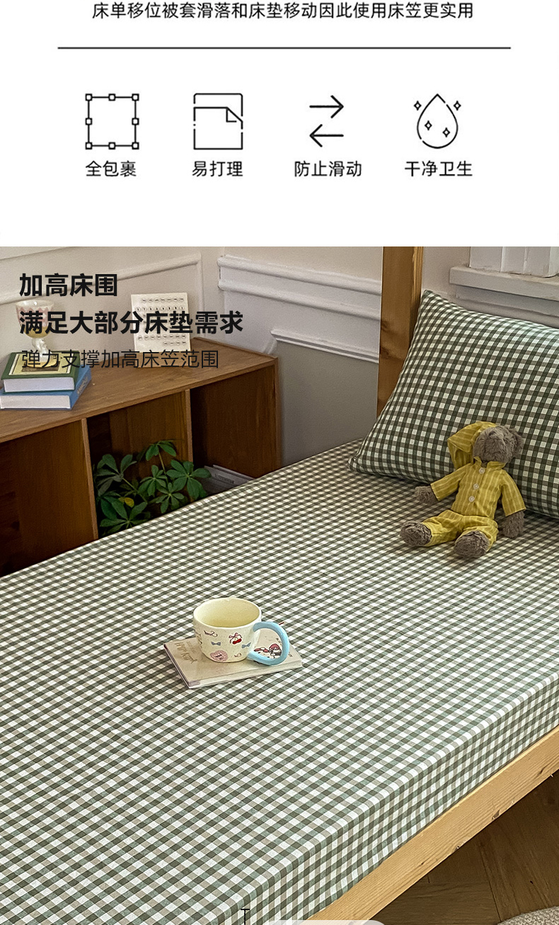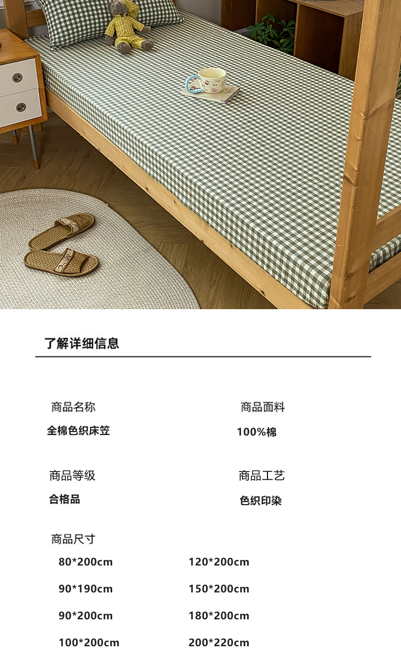 • 91家纺网 家纺一手货源 找家纺 恋人优选 2025新款儿童学生宿舍上下铺全棉纯棉色织床笠单品单床笠床笠单件-无标款系列二 小绿格