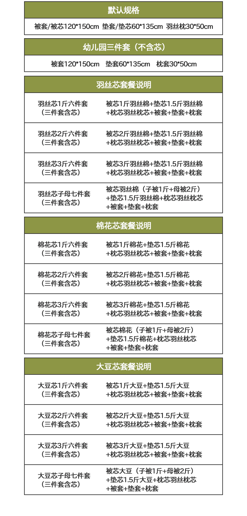 棉花芯3斤六件套(三件套含芯) | ¥135.00 |