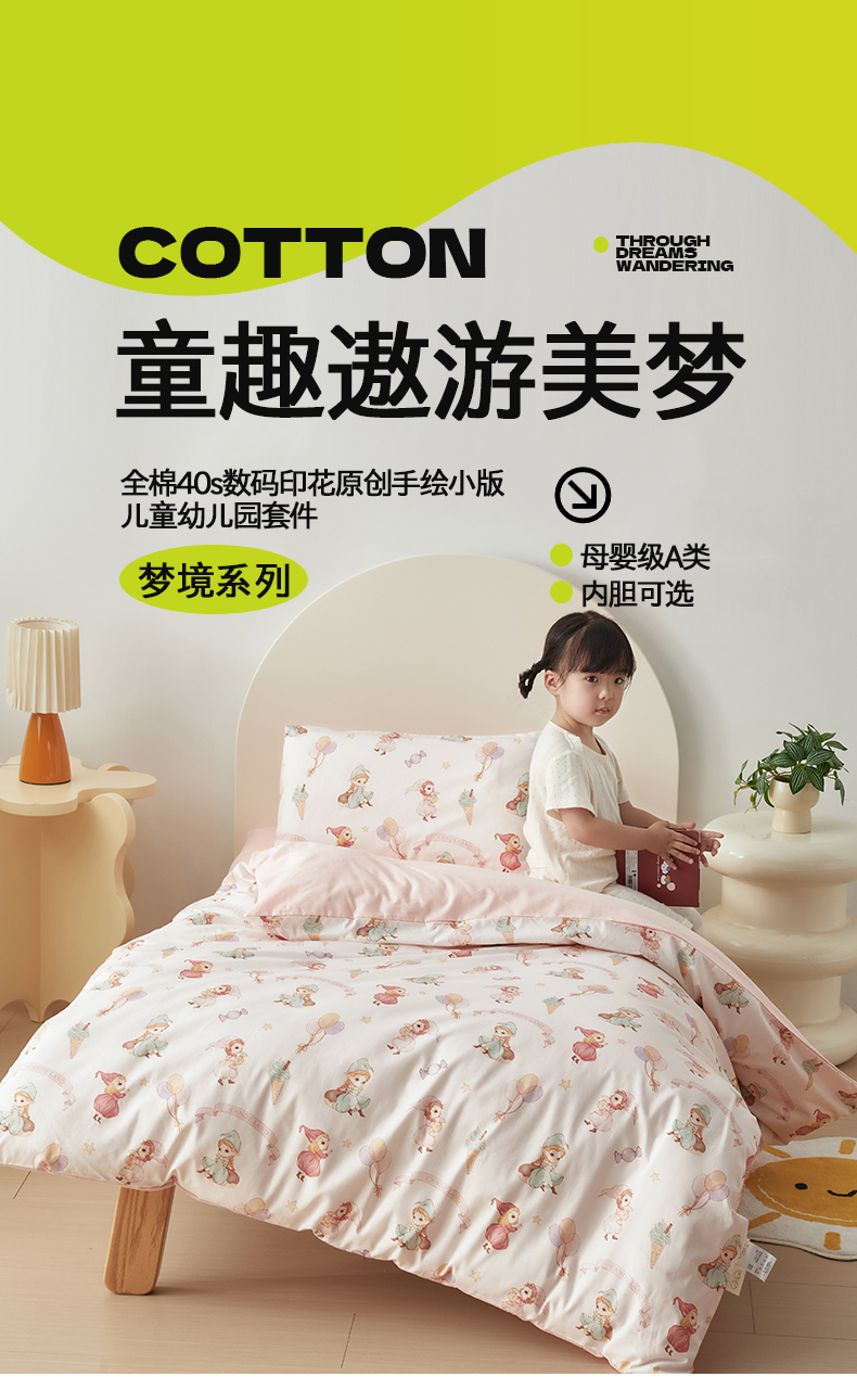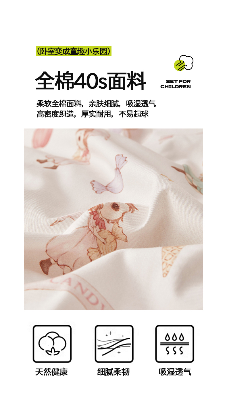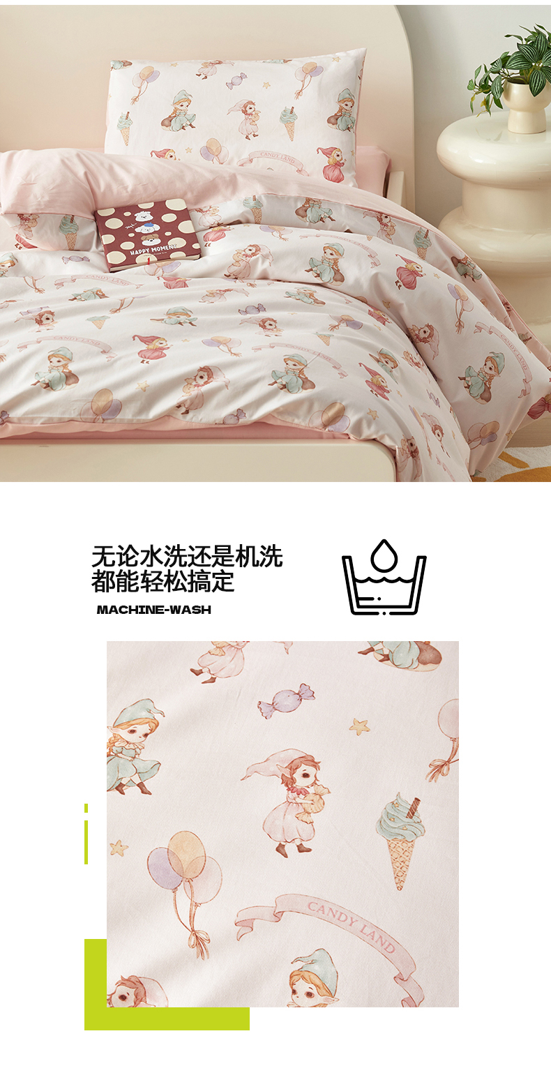 当前位置: 91家纺网 > 商品网购 > 床品套件 > 多件套 > 多件套 > 荷马之梦 2025新款梦境系列—全棉40s数码印花原创手绘小版儿童幼儿园套件 糖果女孩