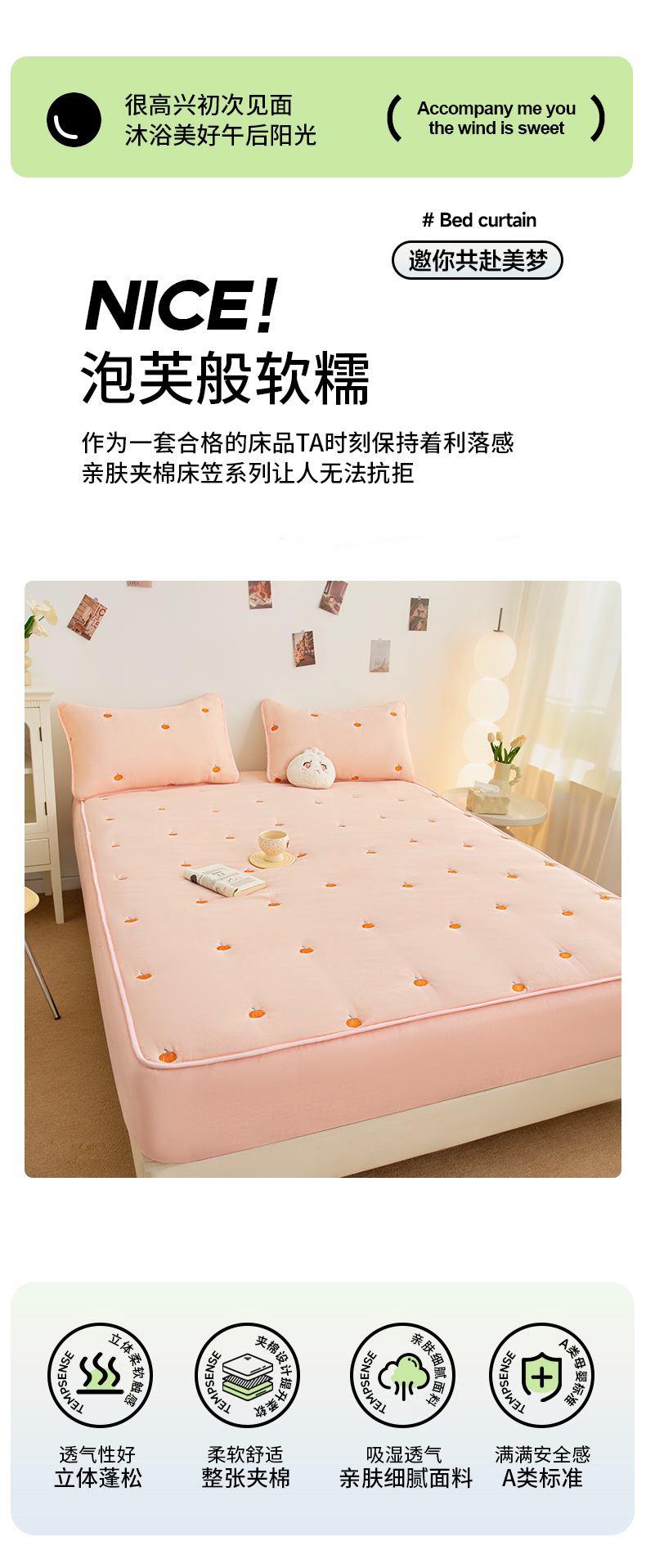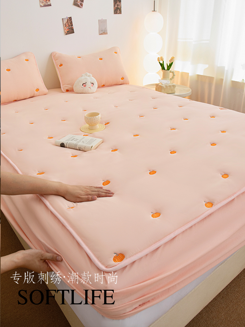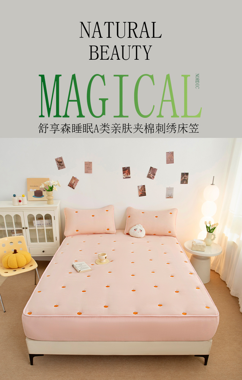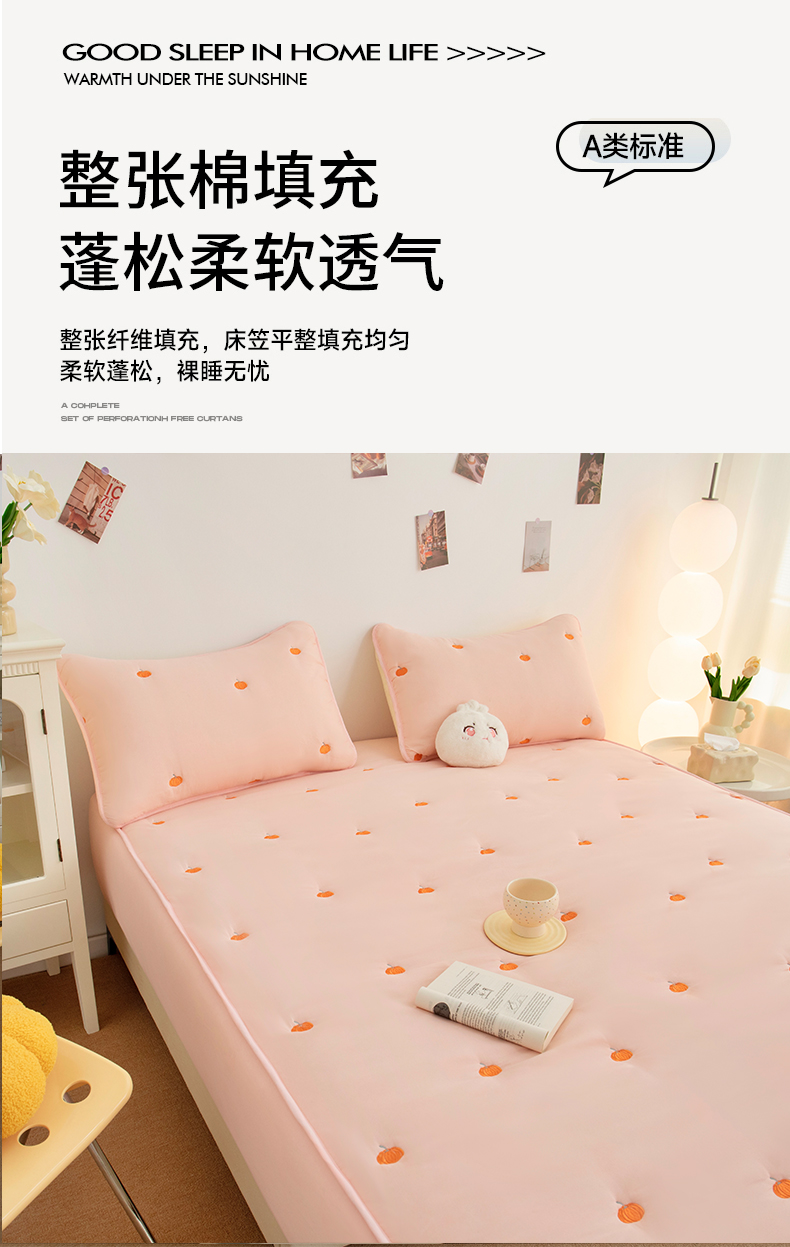 商品名称:(总)乐居家纺 2025新款A类亲肤夹棉刺绣床笠-南瓜