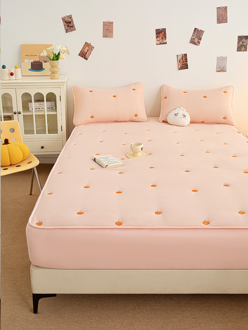 (总)乐居家纺 2025新款A类亲肤夹棉刺绣床笠-南瓜