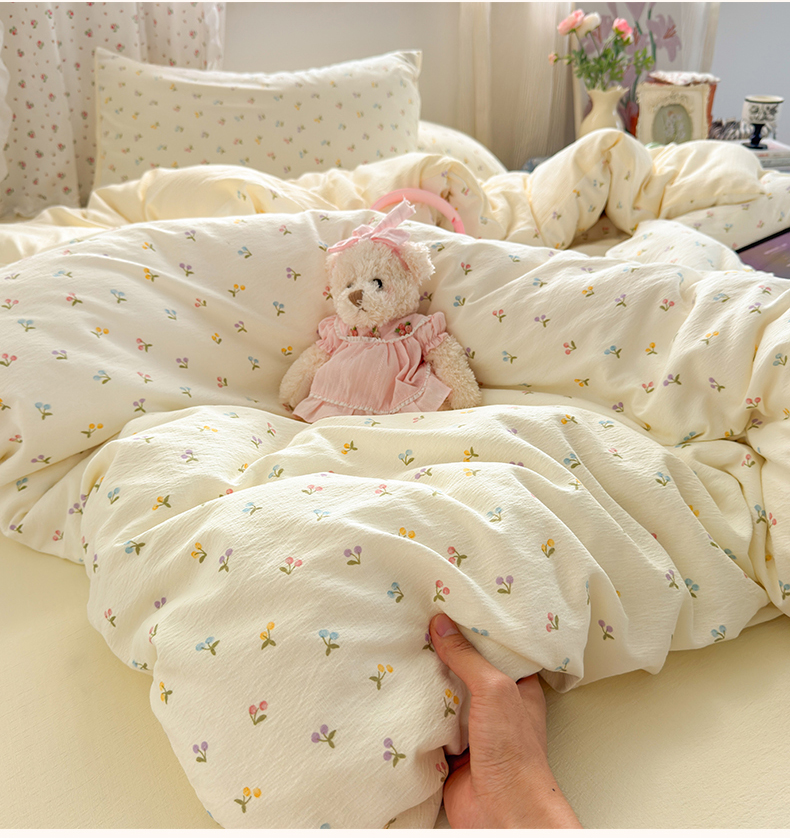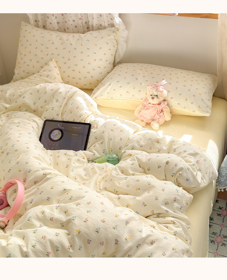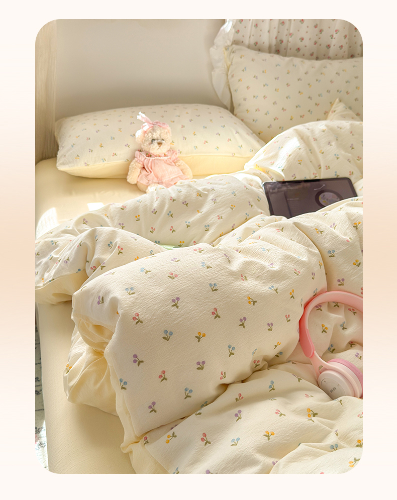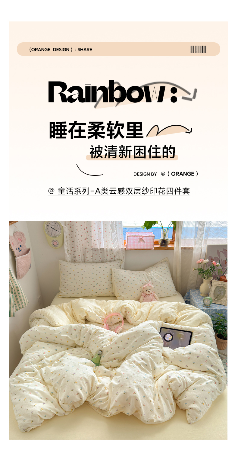 当前位置: 91家纺网 > 商品网购 > 床品套件 > 四件套 > 双层纱四件套 > 罗亿家纺 2025新款云感双层纱印花四件套 童话-樱桃布丁