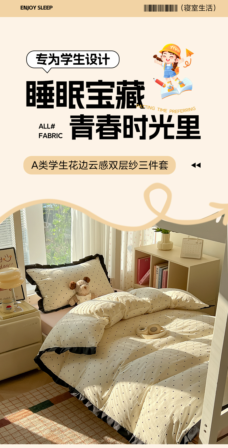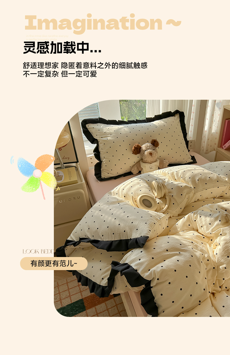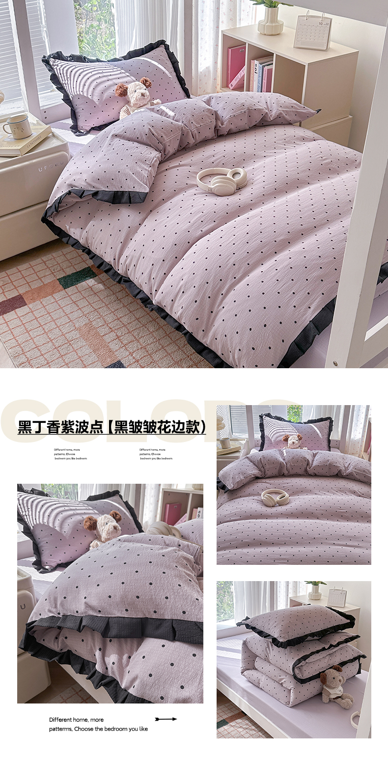 当前位置: 91家纺网 > 商品网购 > 床品套件 > 四件套 > 其它四件套 > 韩巢家纺 2025新款小波点学生宿舍寝室上下铺三件套开学季花边被套四件套 红深粉波点【黑皱皱花边款】