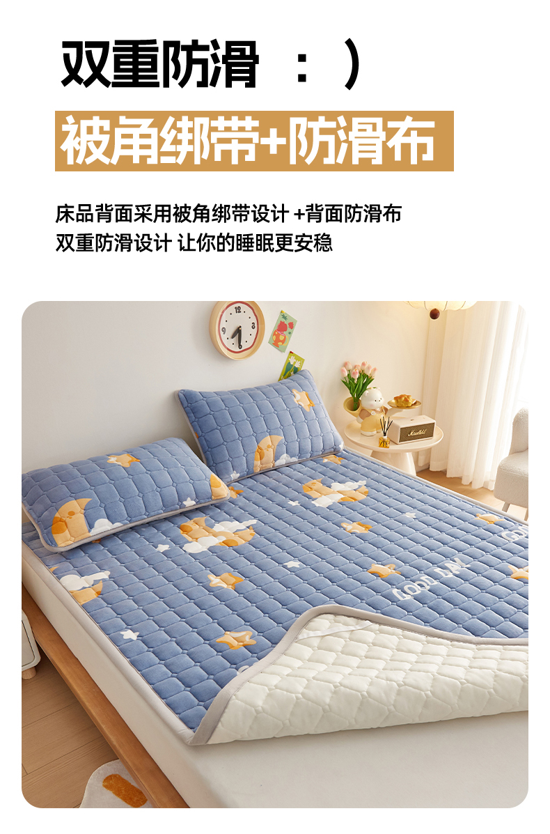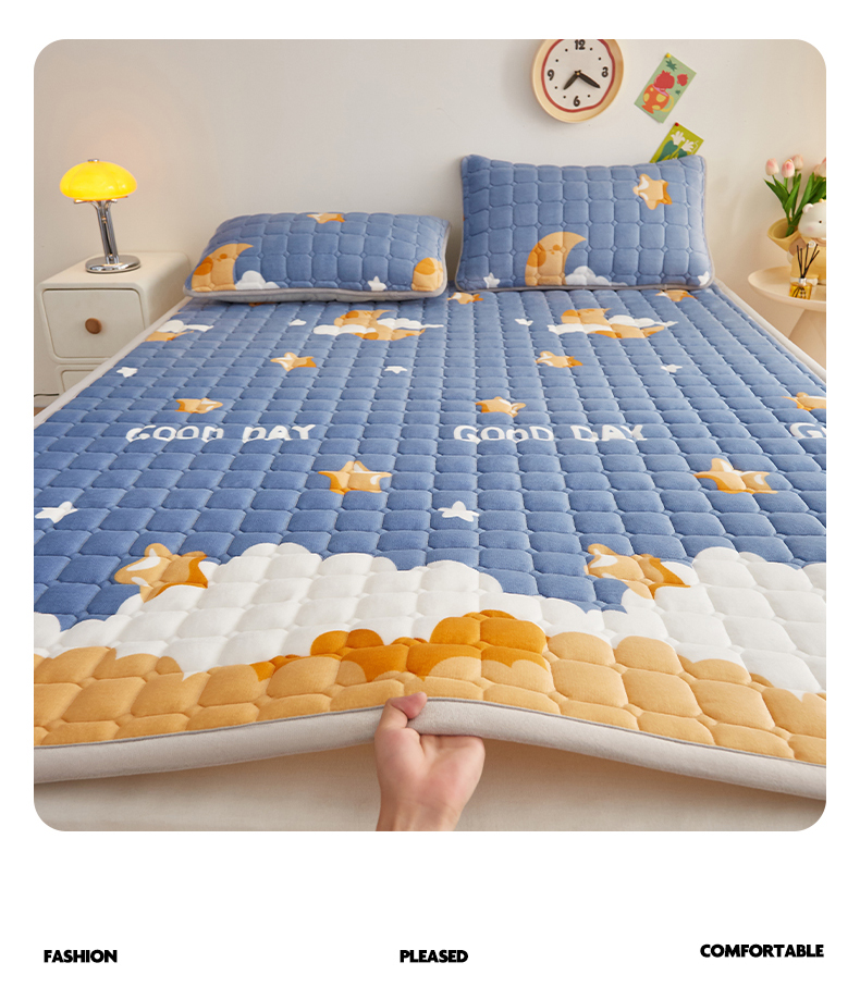 (总)奇丝雅 2025新款A类牛奶绒泡泡绒床褥床垫床盖兔毛绒家用学生宿舍上下铺寝室褥子软垫床护垫夹棉(大床)场景二,星星猫咪,月亮湾,趴趴狗,繁星,爱心咖,樱桃猫咪,幻影灰,暖绒蓝,清新绿,柔和蓝