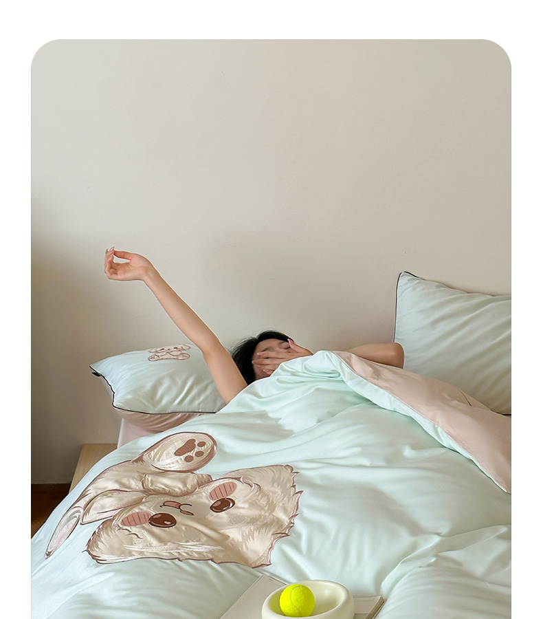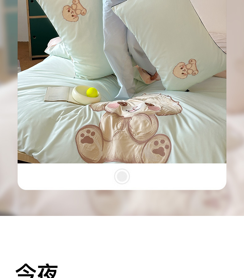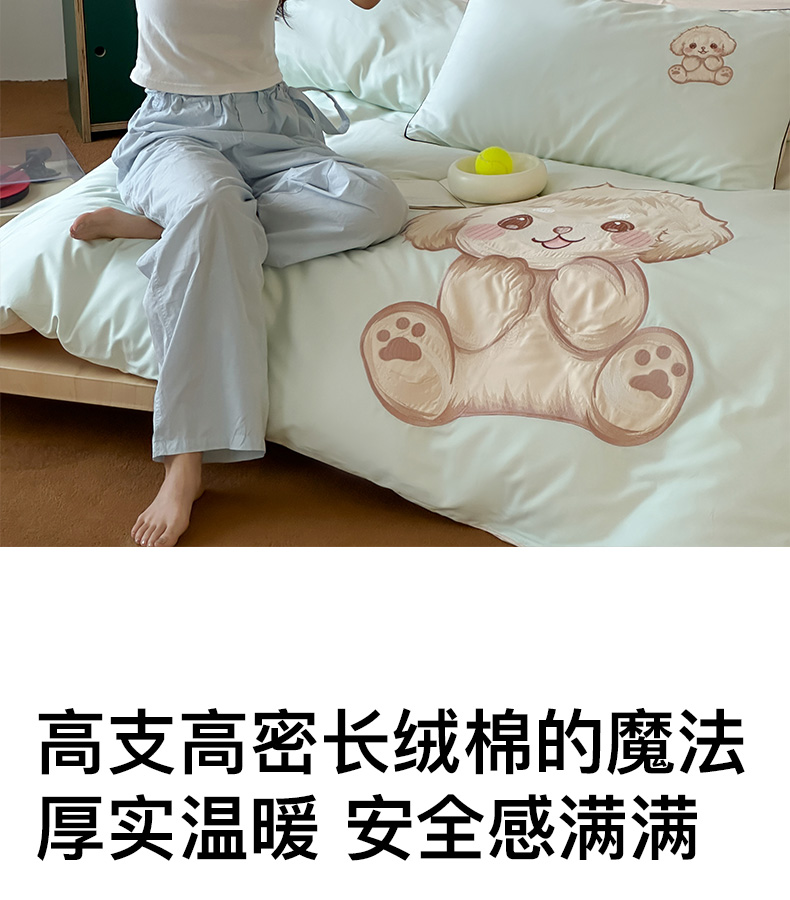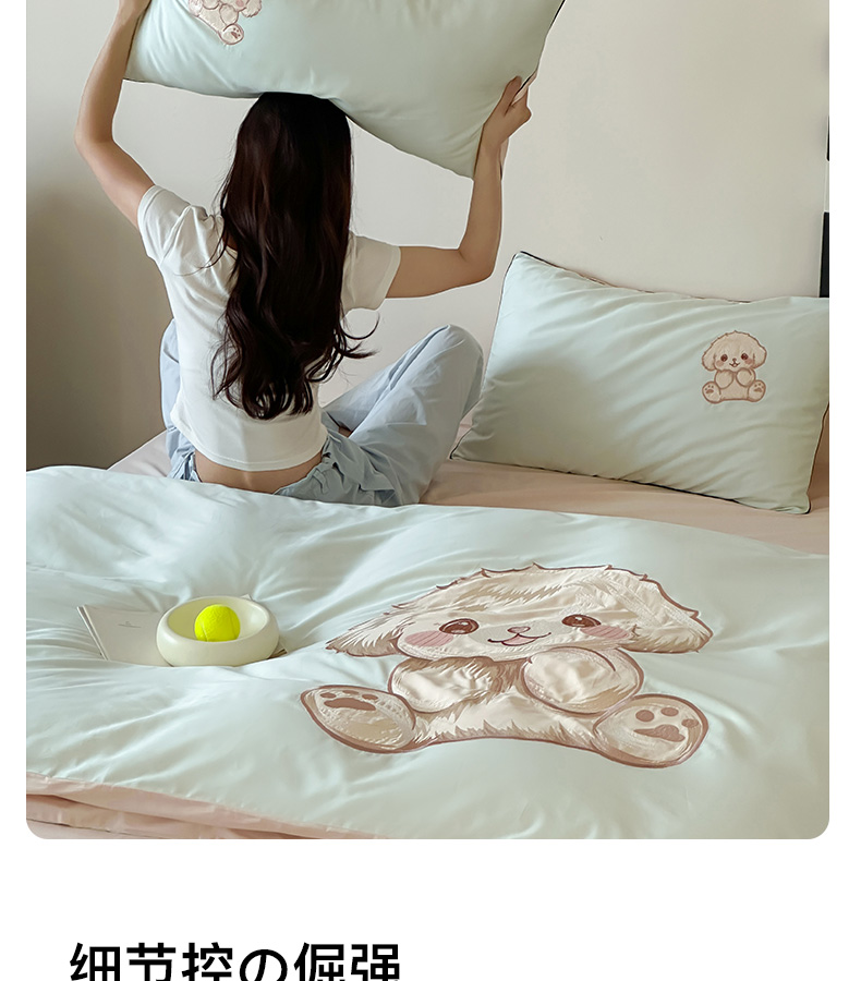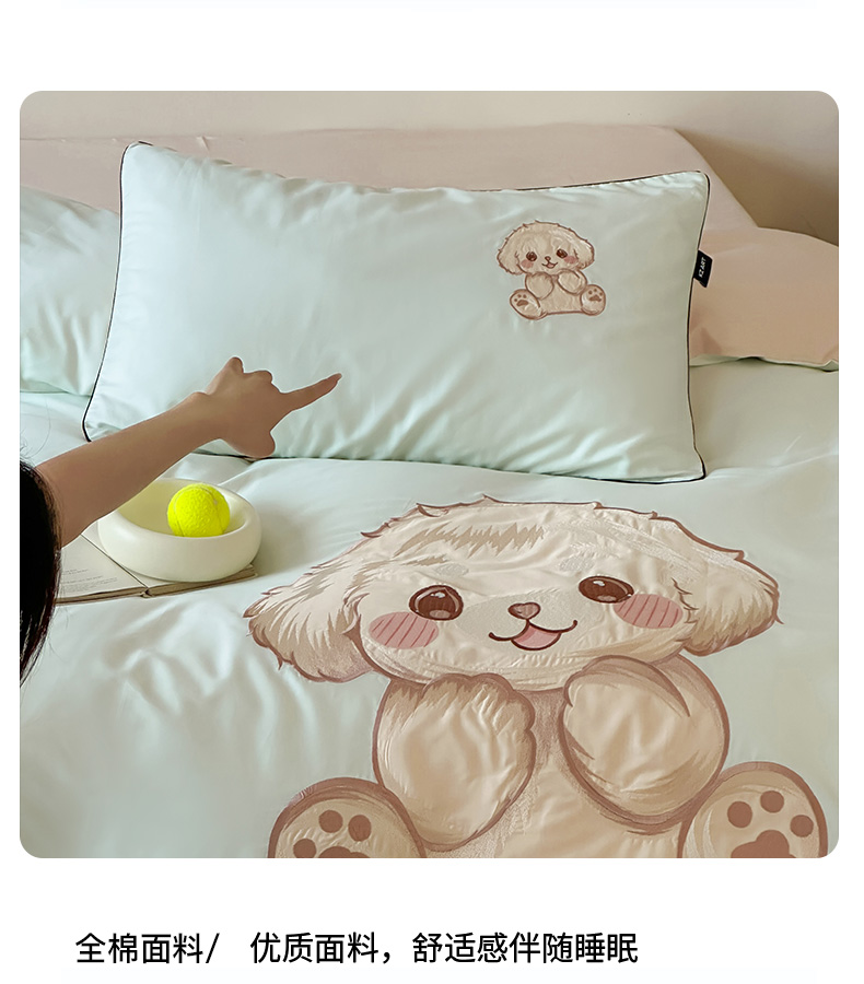 商品名称:卡姿家纺 2025秋冬60支长绒棉贴布绣四件套-萌趣多 萌趣多-绿