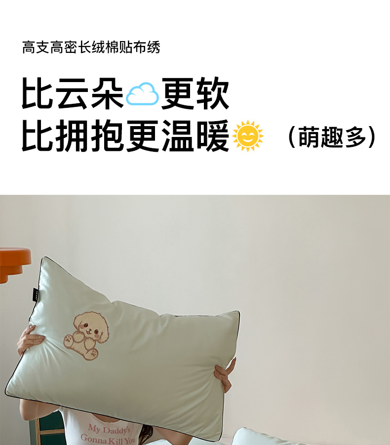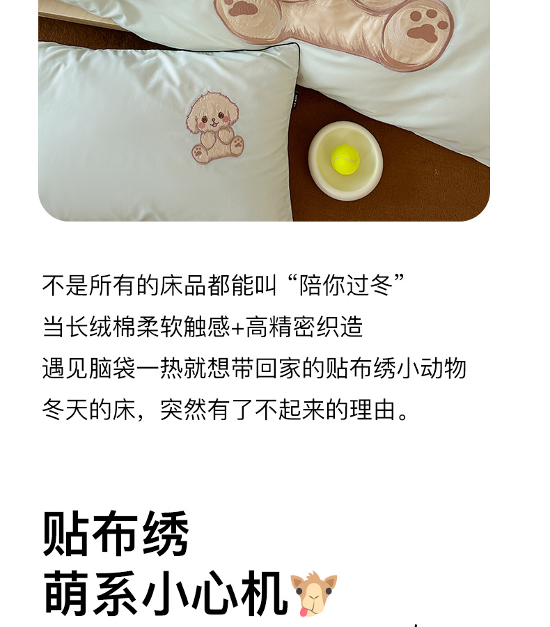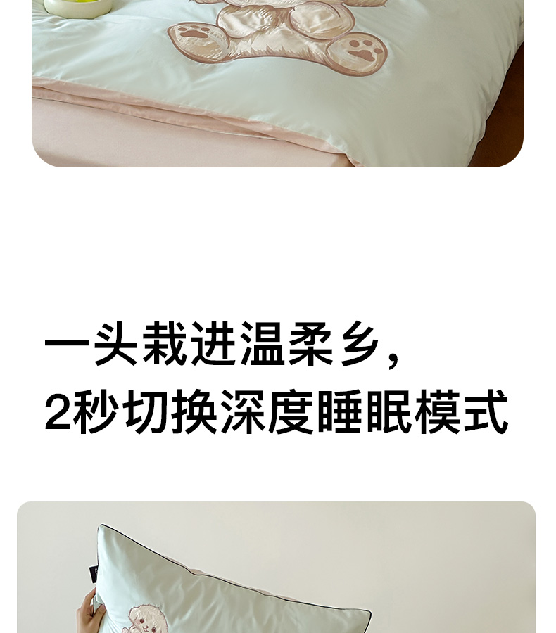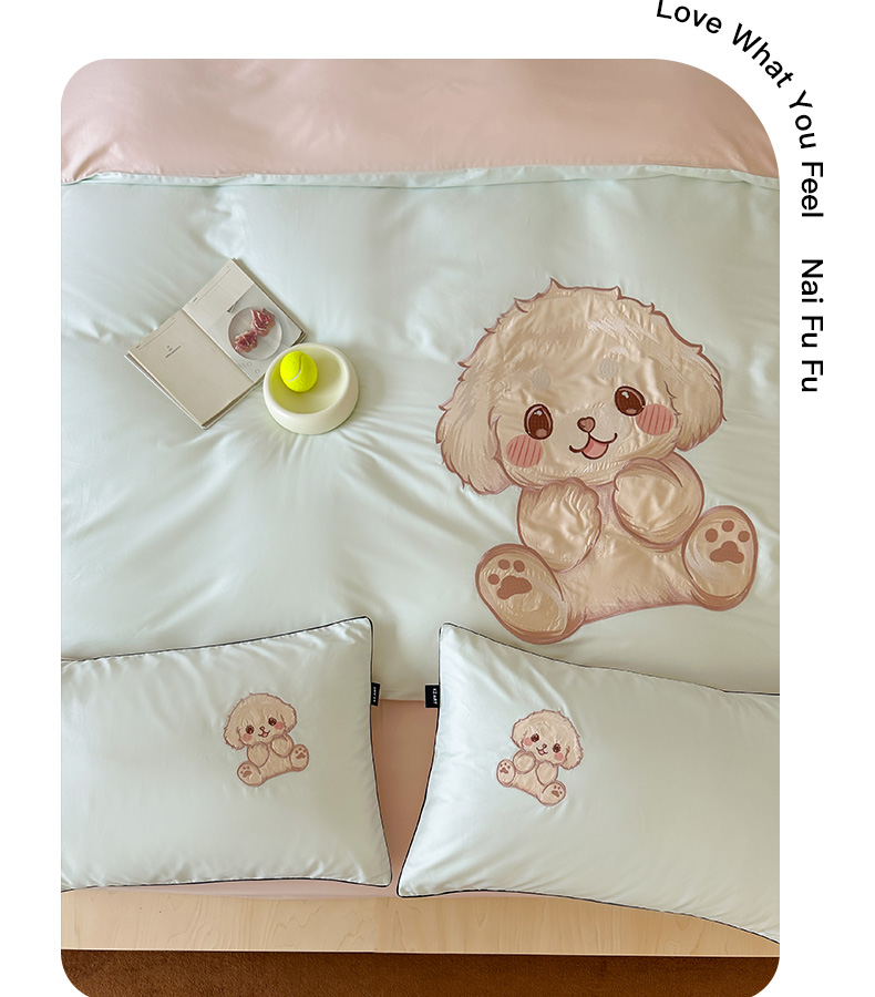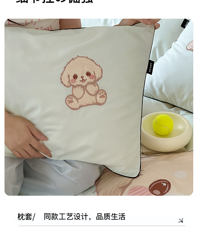 商品名称:卡姿家纺 2025秋冬60支长绒棉贴布绣四件套-萌趣多 萌趣多-绿