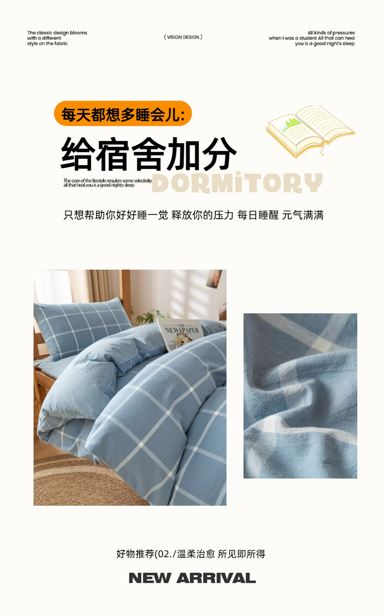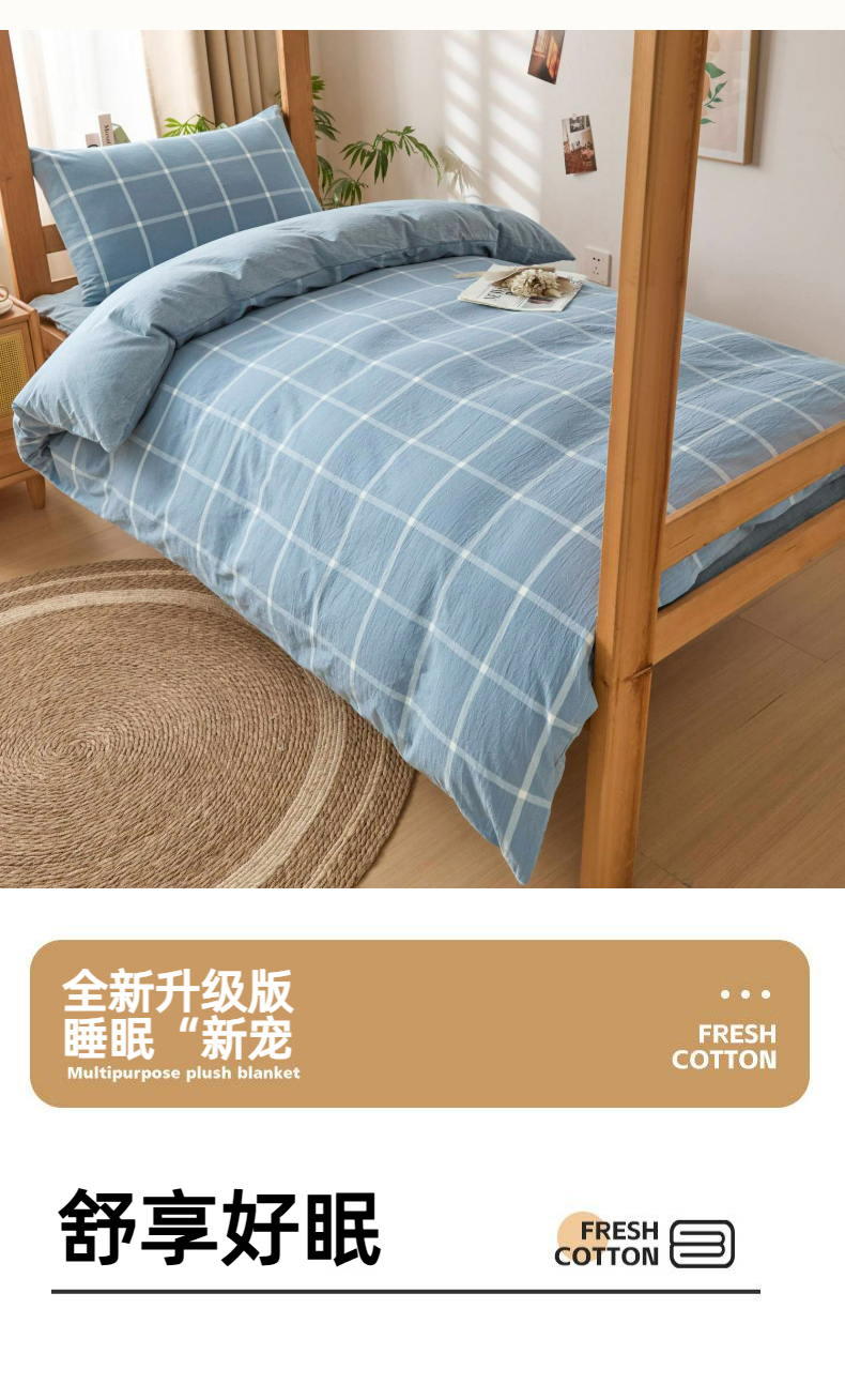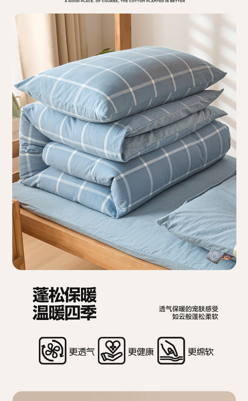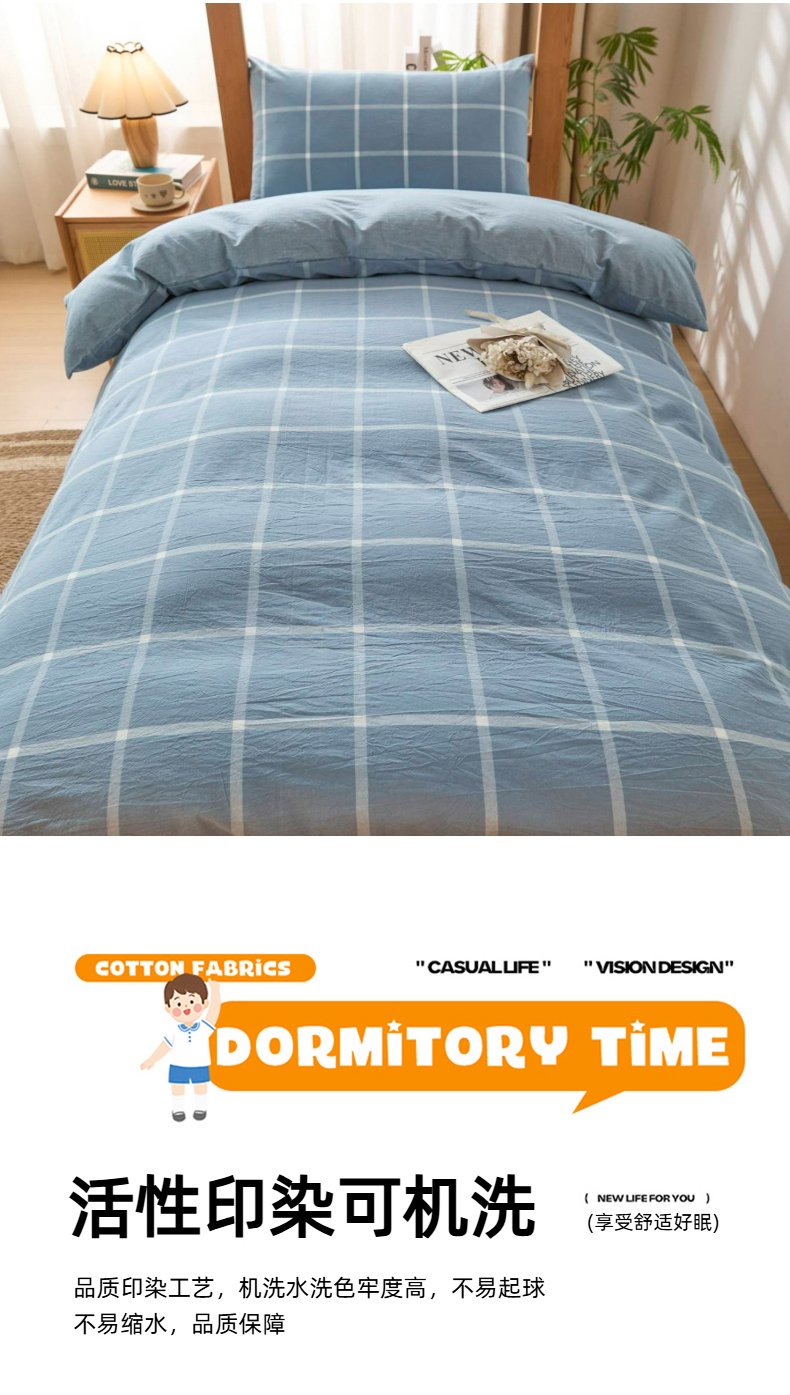 (总)爱屋及屋 2025新款水洗棉学生季大礼包学生宿舍六件套棉花被+棉花垫子+枕头+三件套一站式全套,海蓝大格,格韵蓝,光年灰,灰中格,简析粉,简析蓝,蓝咖大格,蓝小格,蓝中格,清新格,韵绿格,左岸蓝