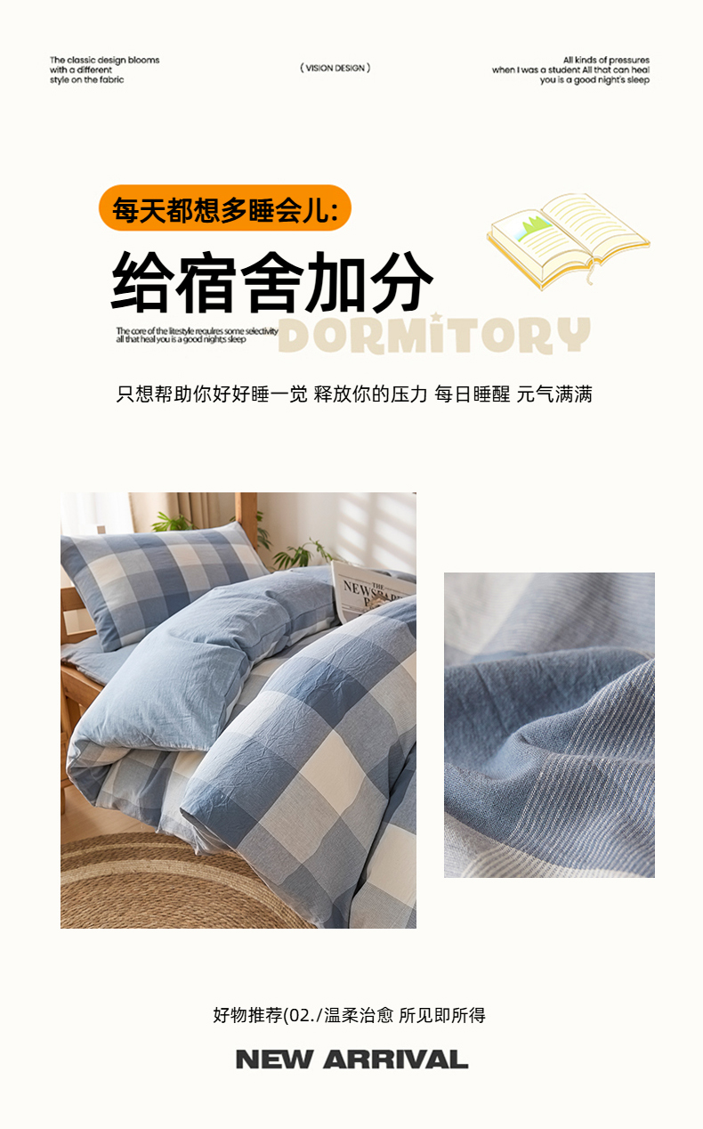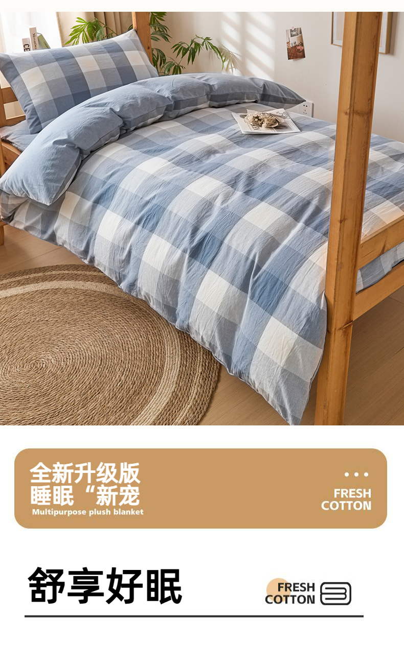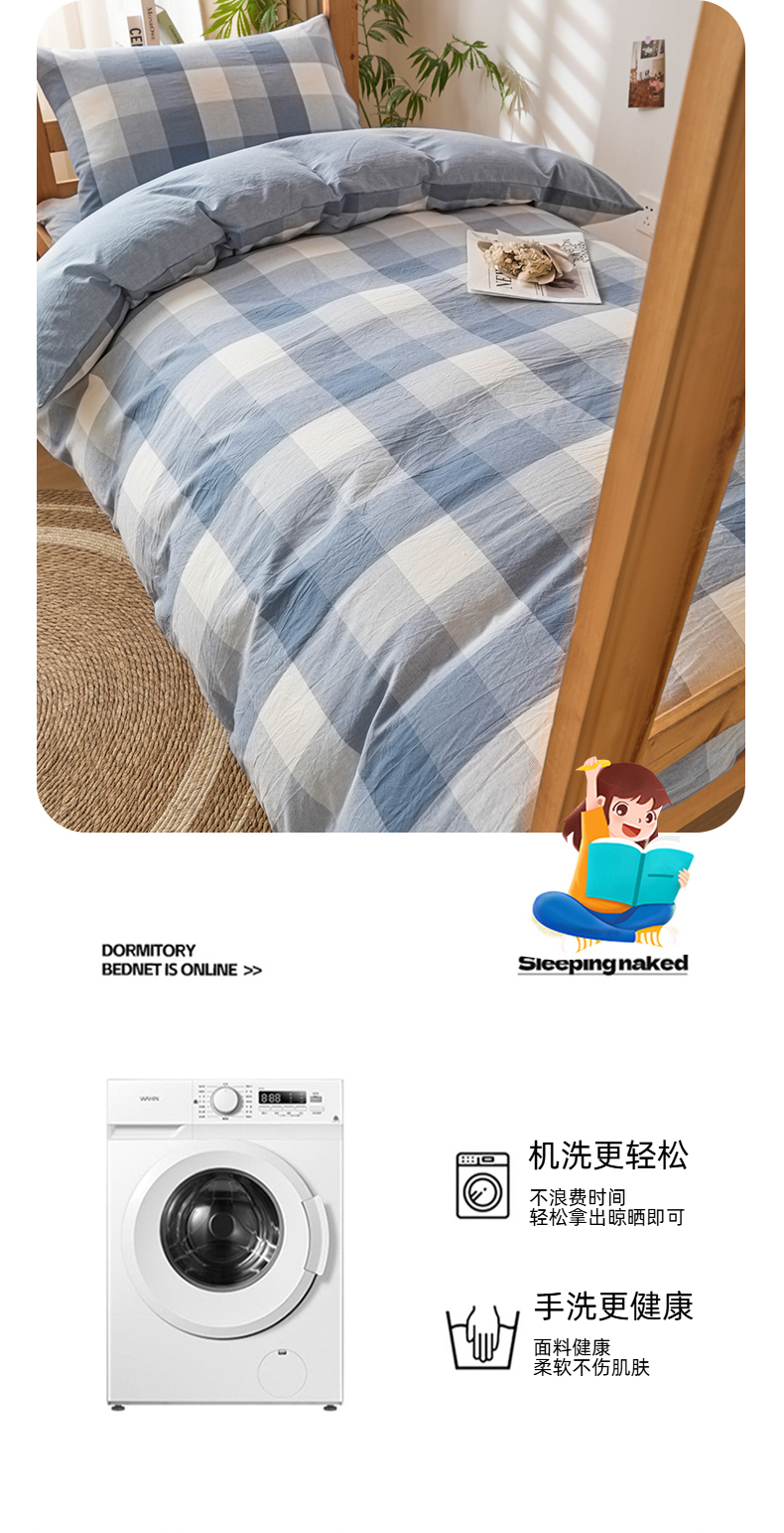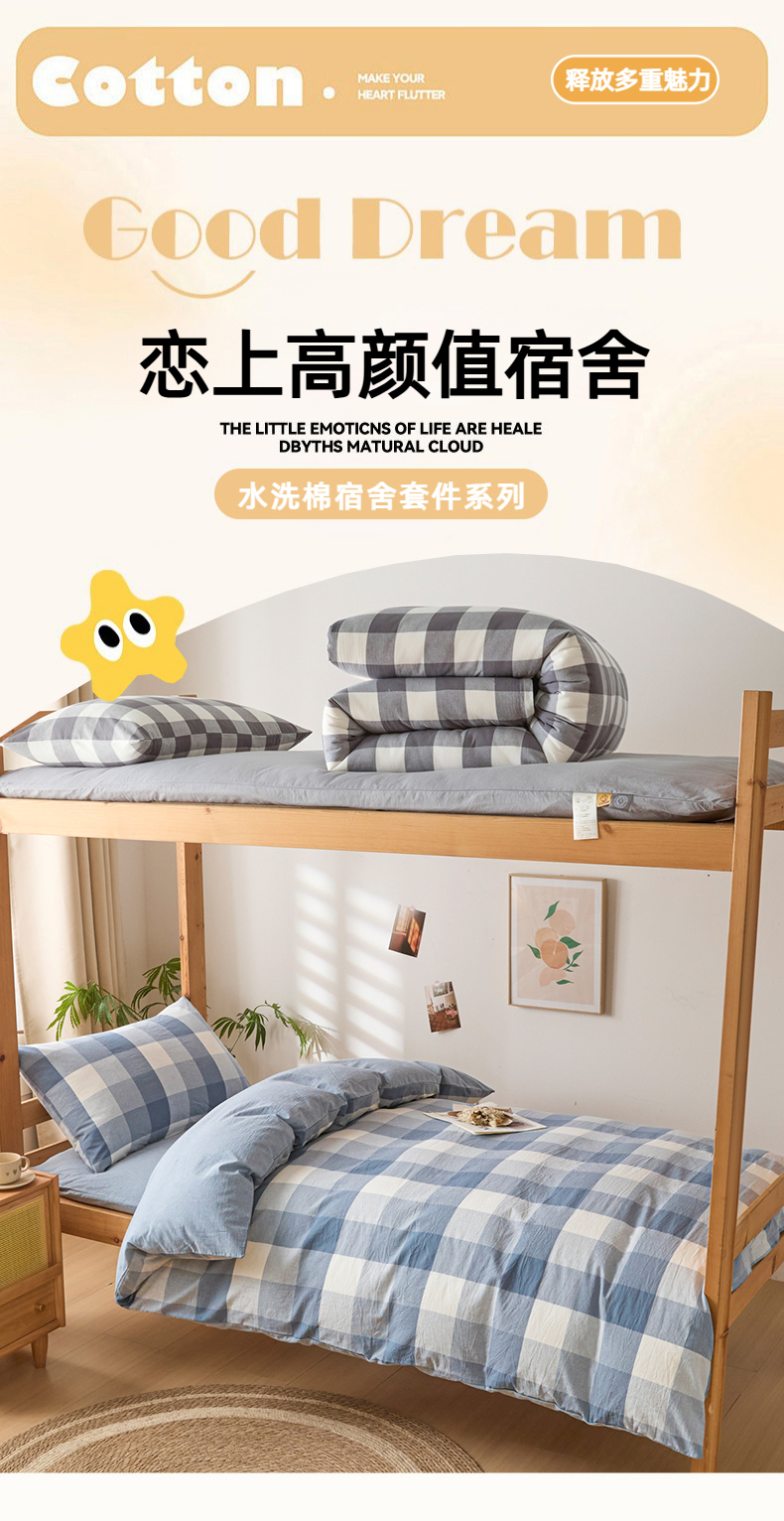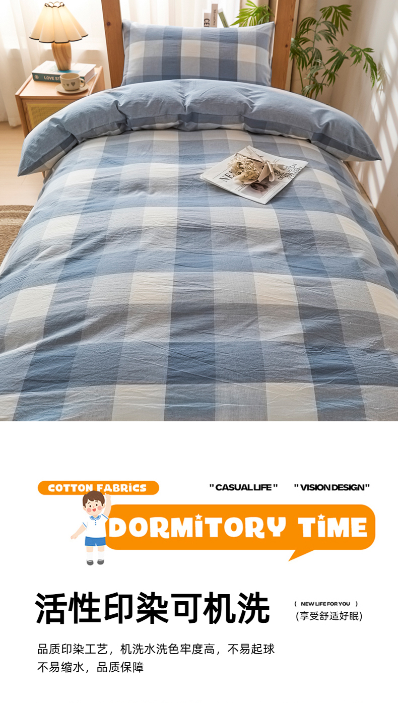 (总)爱屋及屋 2025新款水洗棉学生季大礼包学生宿舍六件套棉花被+棉花垫子+枕头+三件套一站式全套,海蓝大格,格韵蓝,光年灰,灰中格,简析粉,简析蓝,蓝咖大格,蓝小格,蓝中格,清新格,韵绿格,左岸蓝