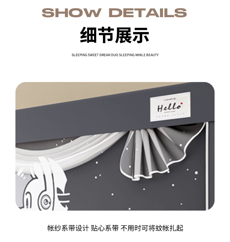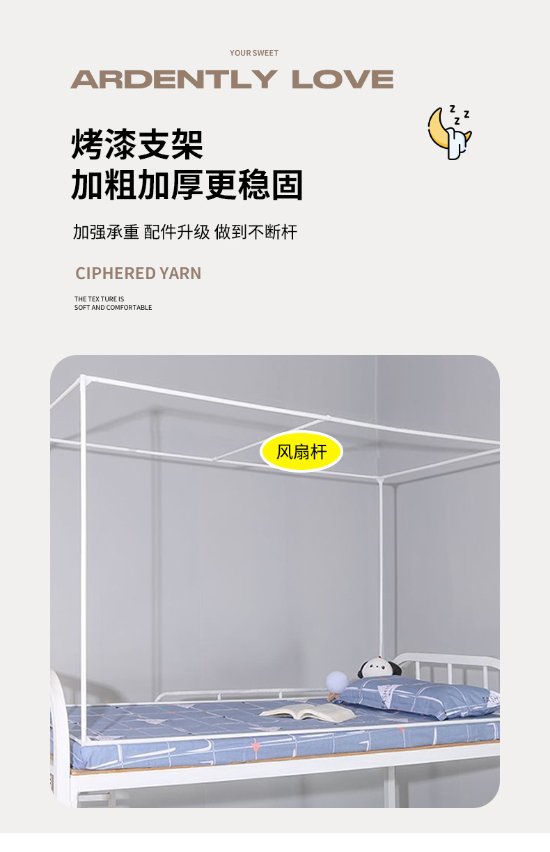 • 91家纺网 家纺一手货源 找家纺 青竹苑 2025新款织标印花纯色强遮光坐床学生蚊帐 星际探索灰色