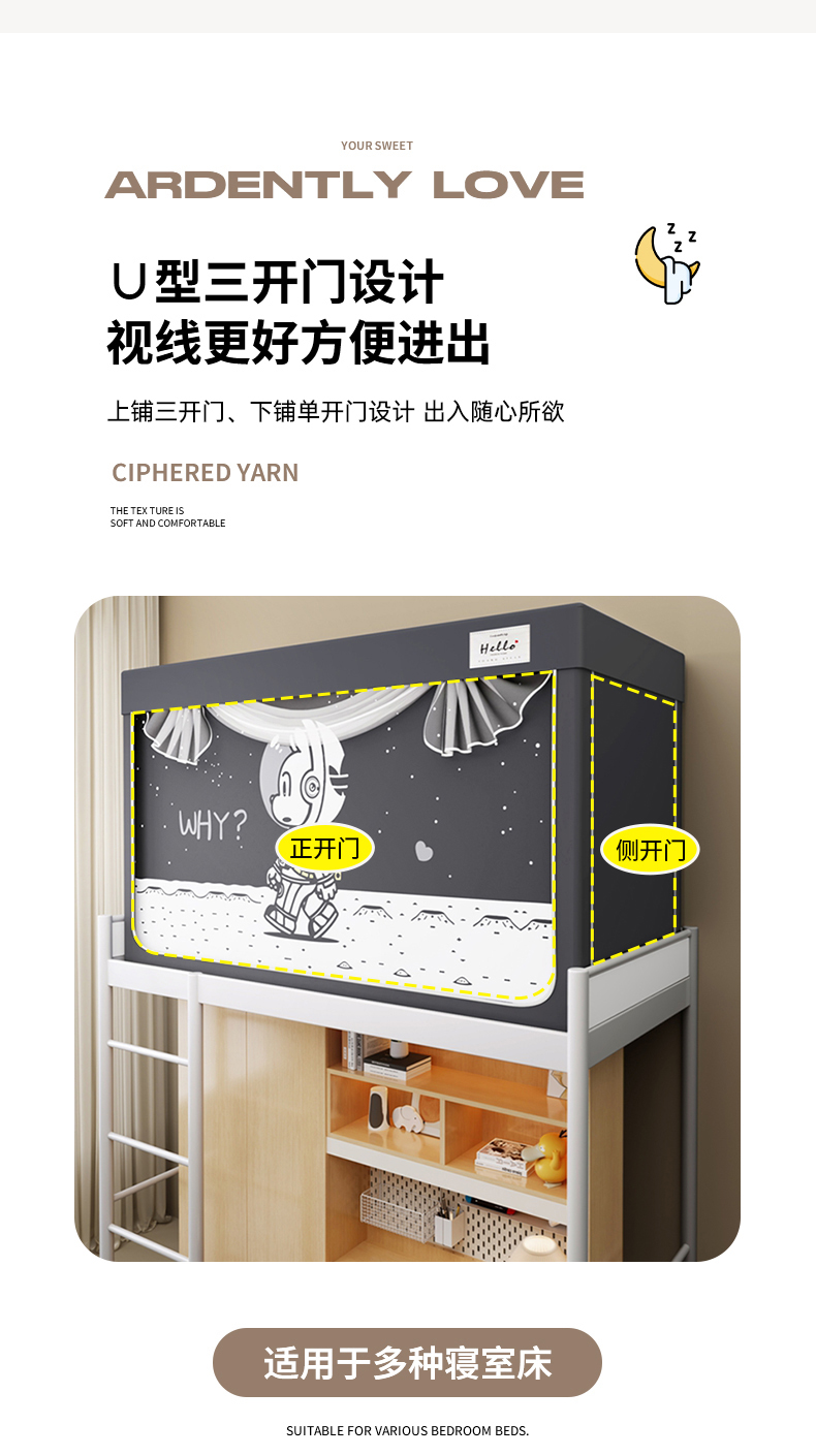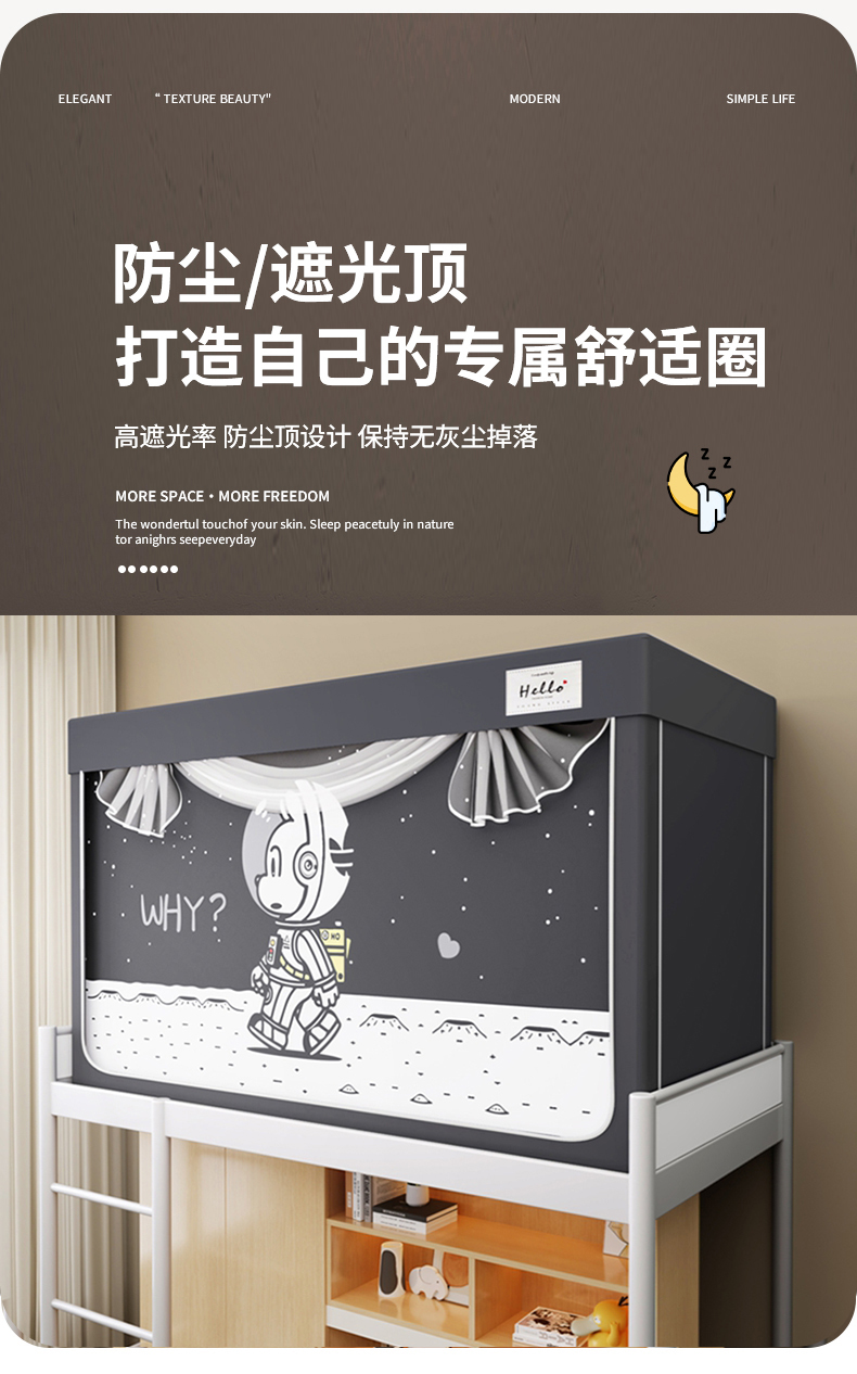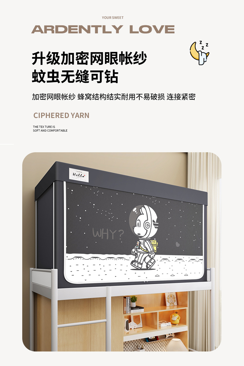 当前位置: 91家纺网 > 商品网购 > 床上用品 > 蚊帐 > 青竹苑 2025新款织标印花纯色强遮光坐床学生蚊帐 星际探索灰色