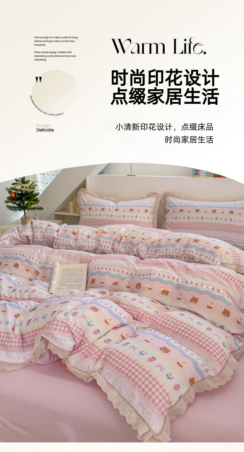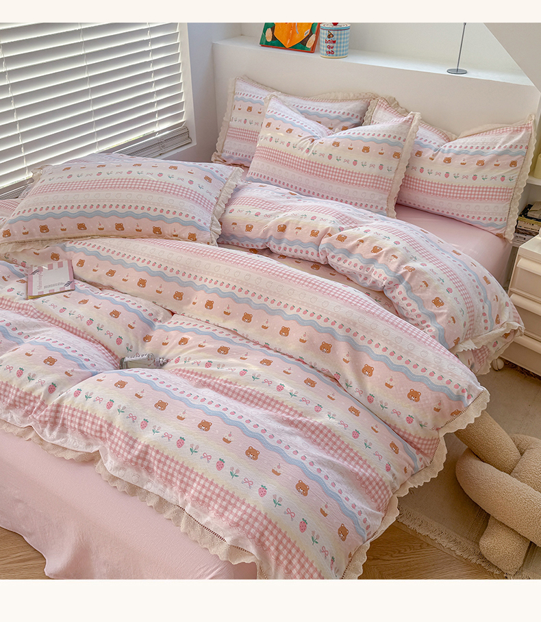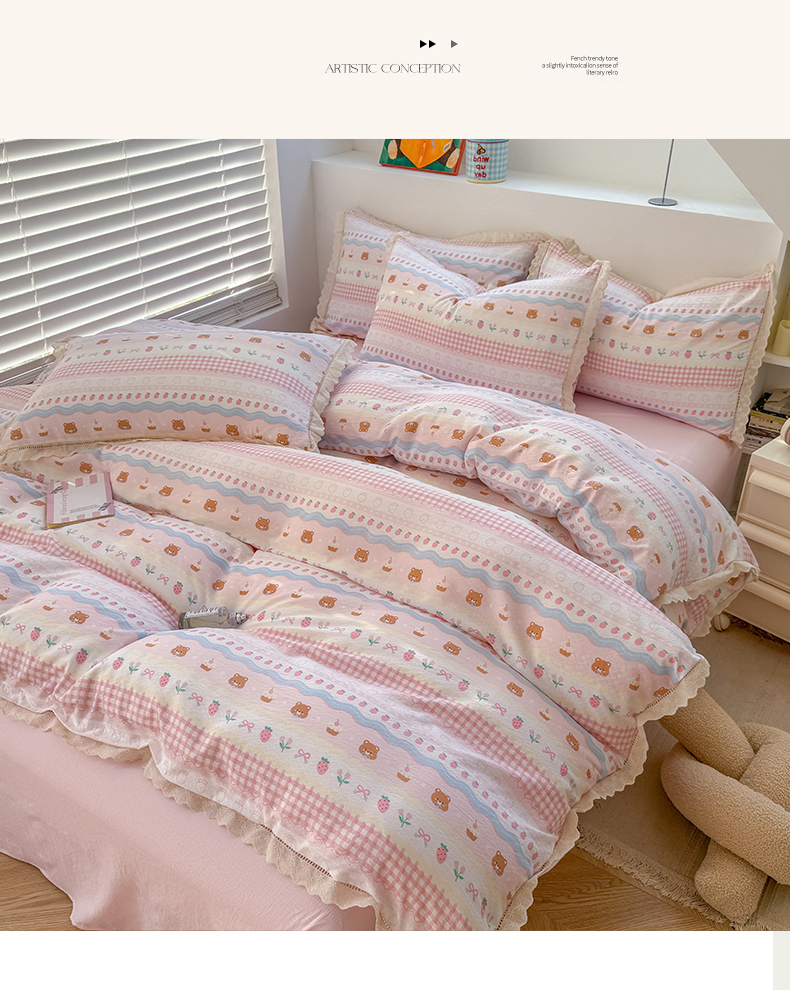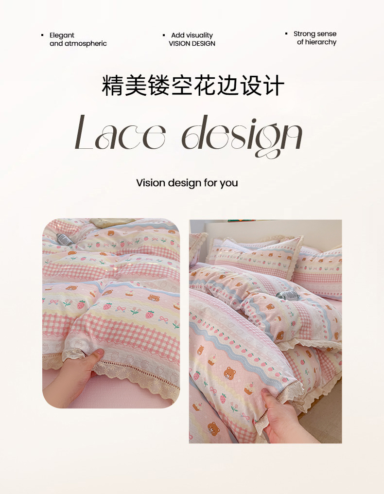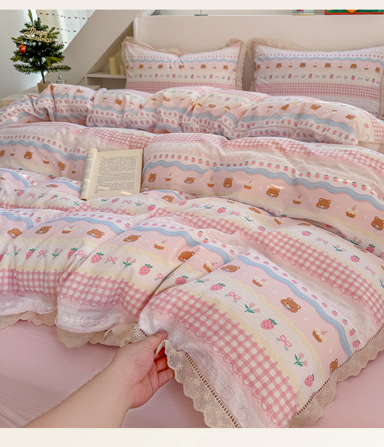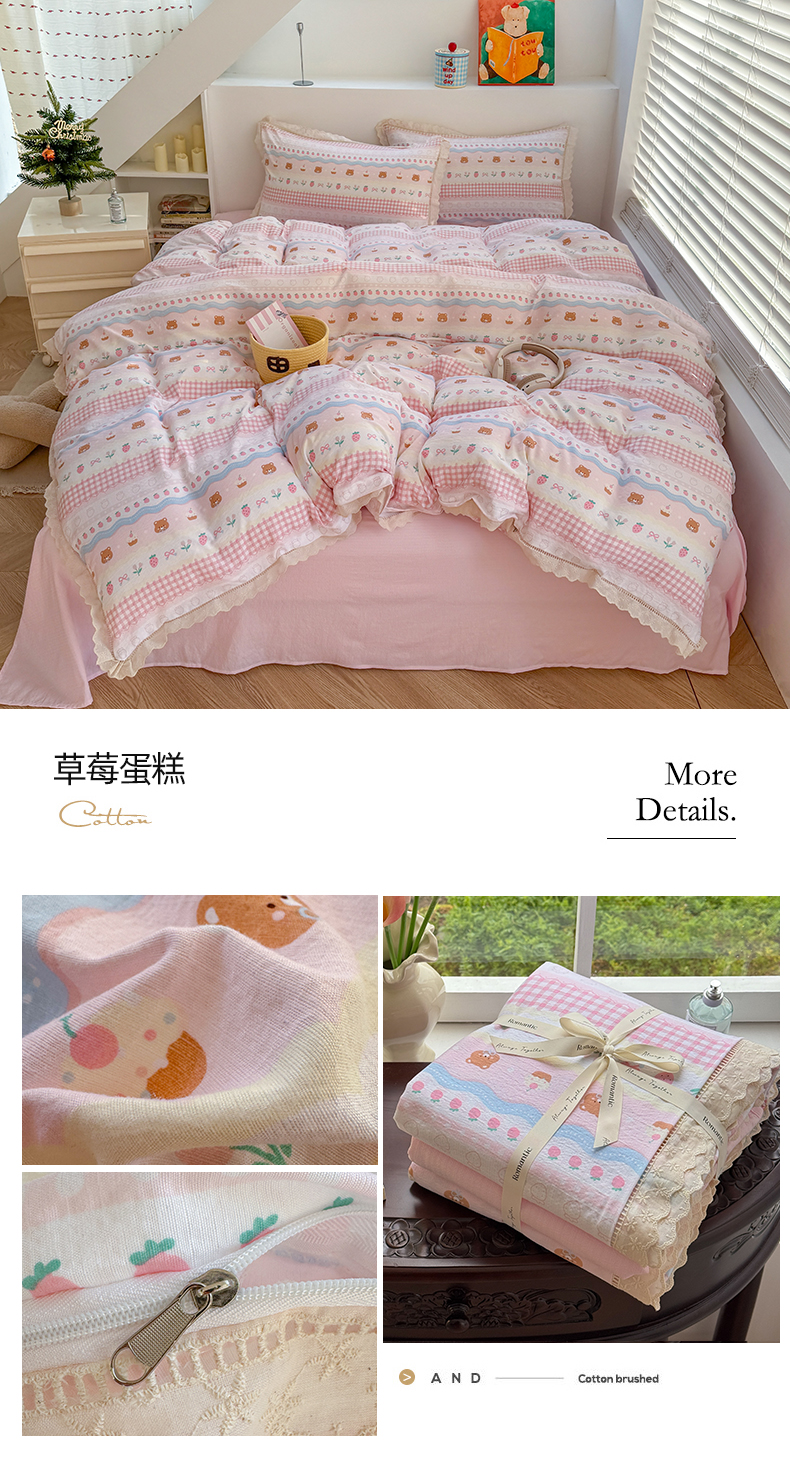 当前位置: 91家纺网 > 商品网购 > 床品套件 > 四件套 > 其它四件套 > 艾特你 2025新款云感双层纱镂空花边四件套 花边款-蛋糕草莓