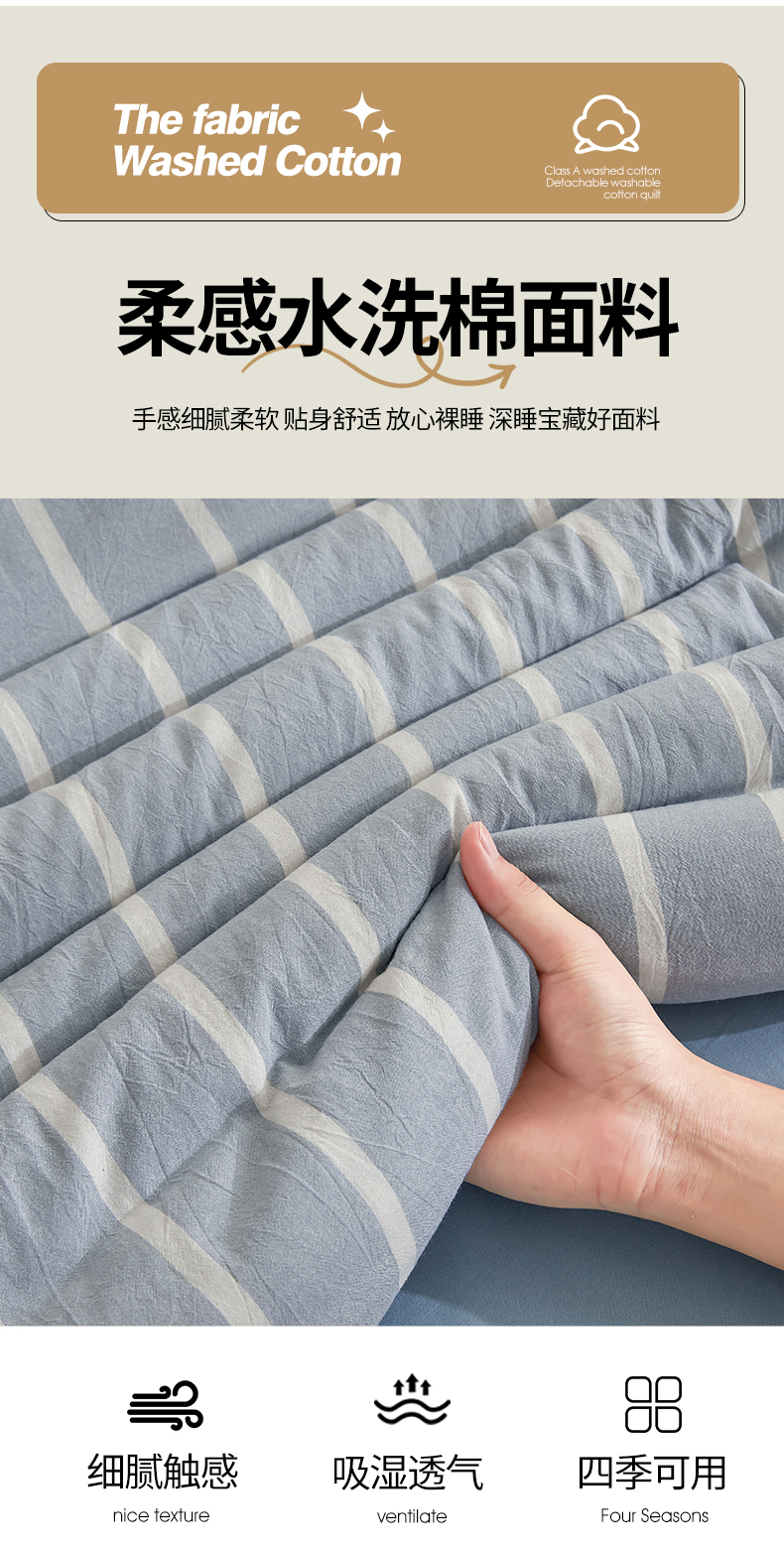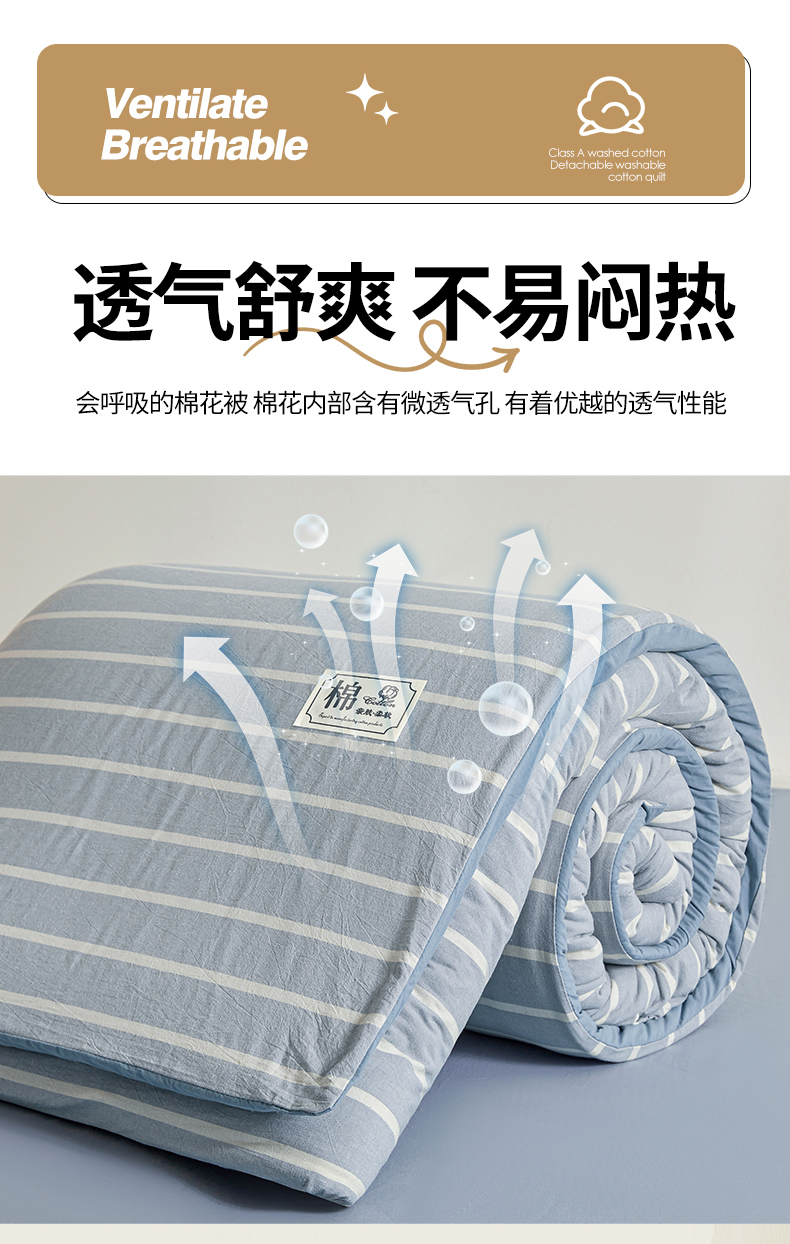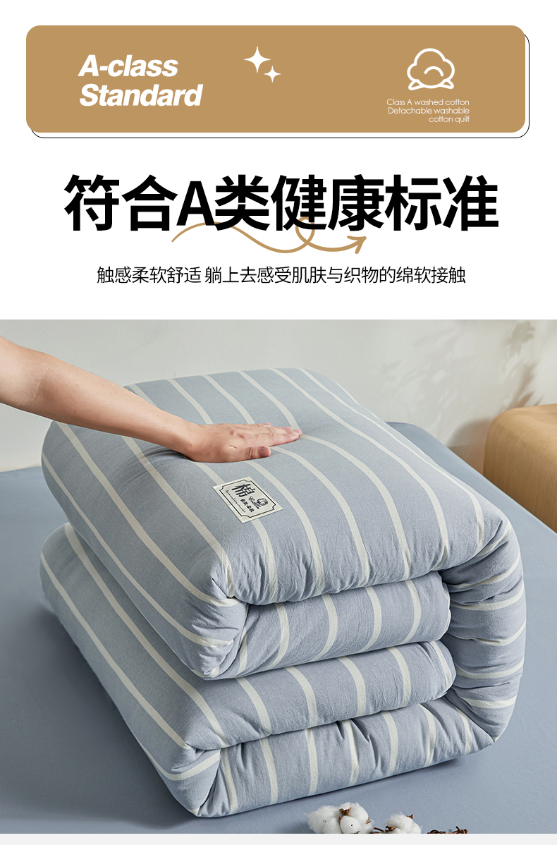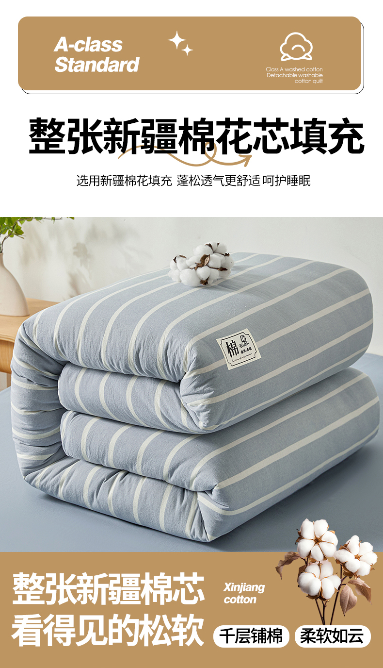 • 91家纺网 家纺一手货源 找家纺 晓时候 2025新款A类水洗棉可拆洗新疆棉花被冬被春秋被夏被四季被子被芯 蓝条纹