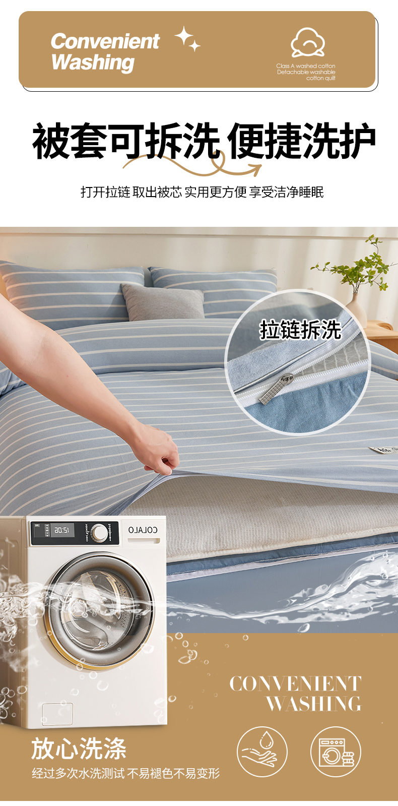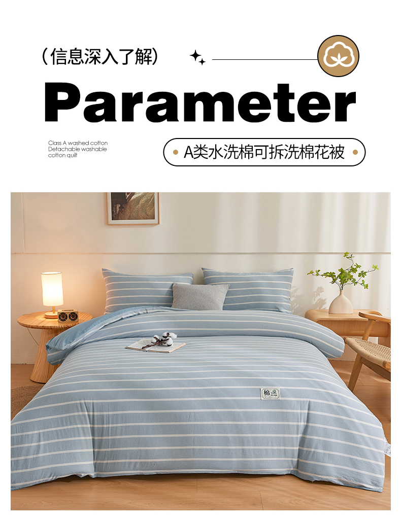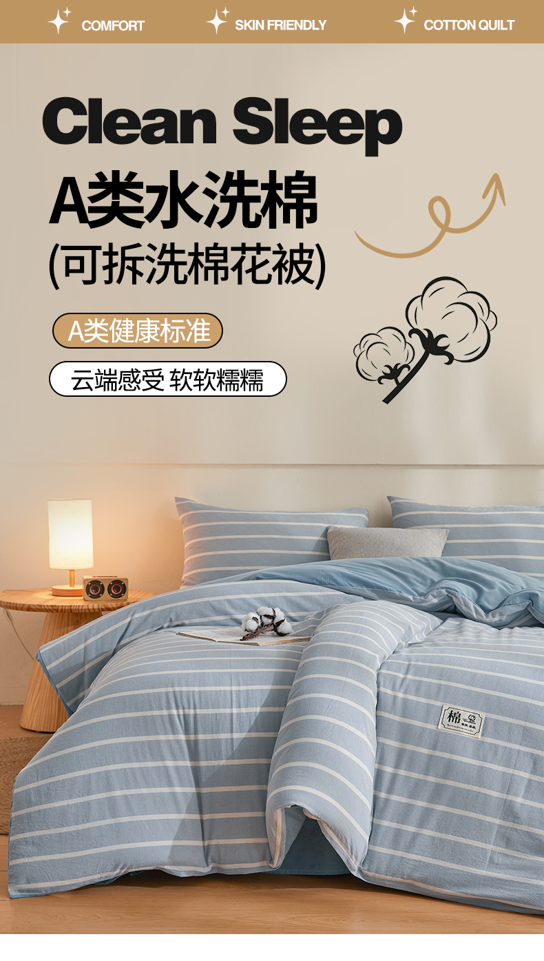 • 91家纺网 家纺一手货源 找家纺 晓时候 2025新款A类水洗棉可拆洗新疆棉花被冬被春秋被夏被四季被子被芯 蓝条纹