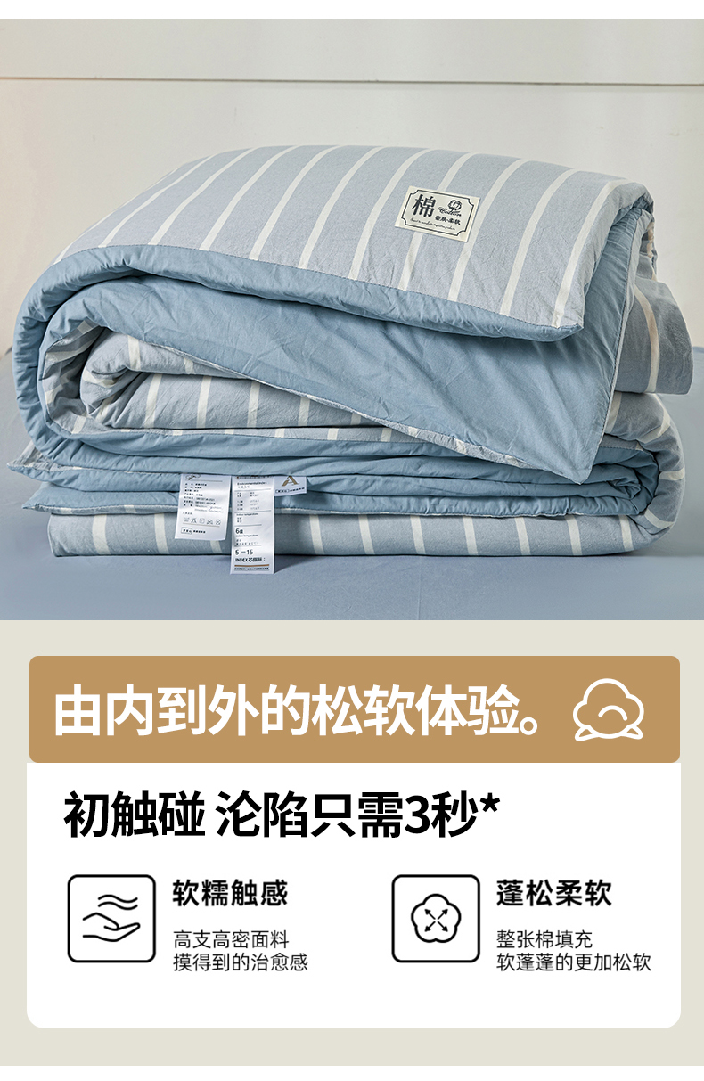 当前位置: 91家纺网 > 商品网购 > 被子 > 棉被 > 晓时候 2025新款A类水洗棉可拆洗新疆棉花被冬被春秋被夏被四季被子被芯 蓝条纹