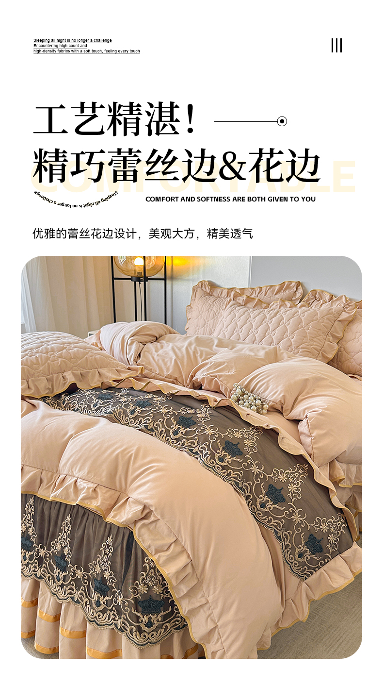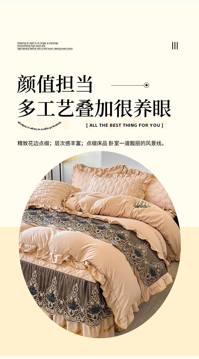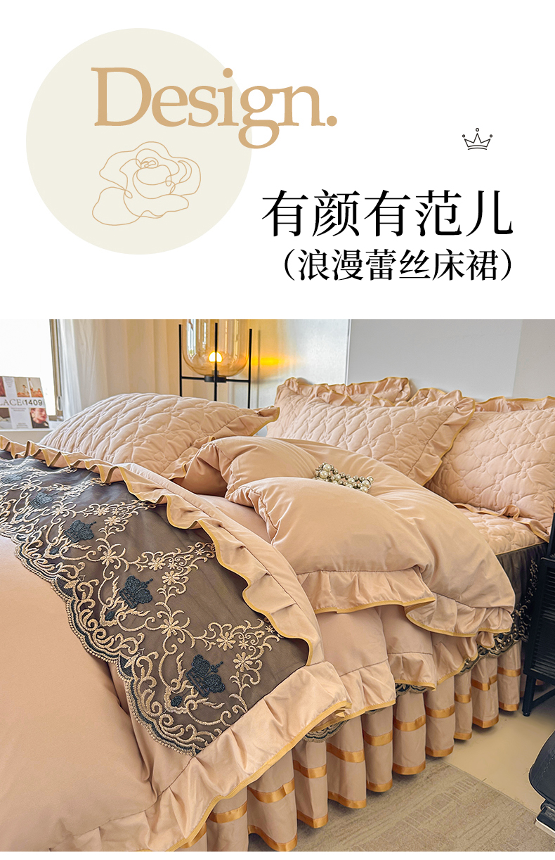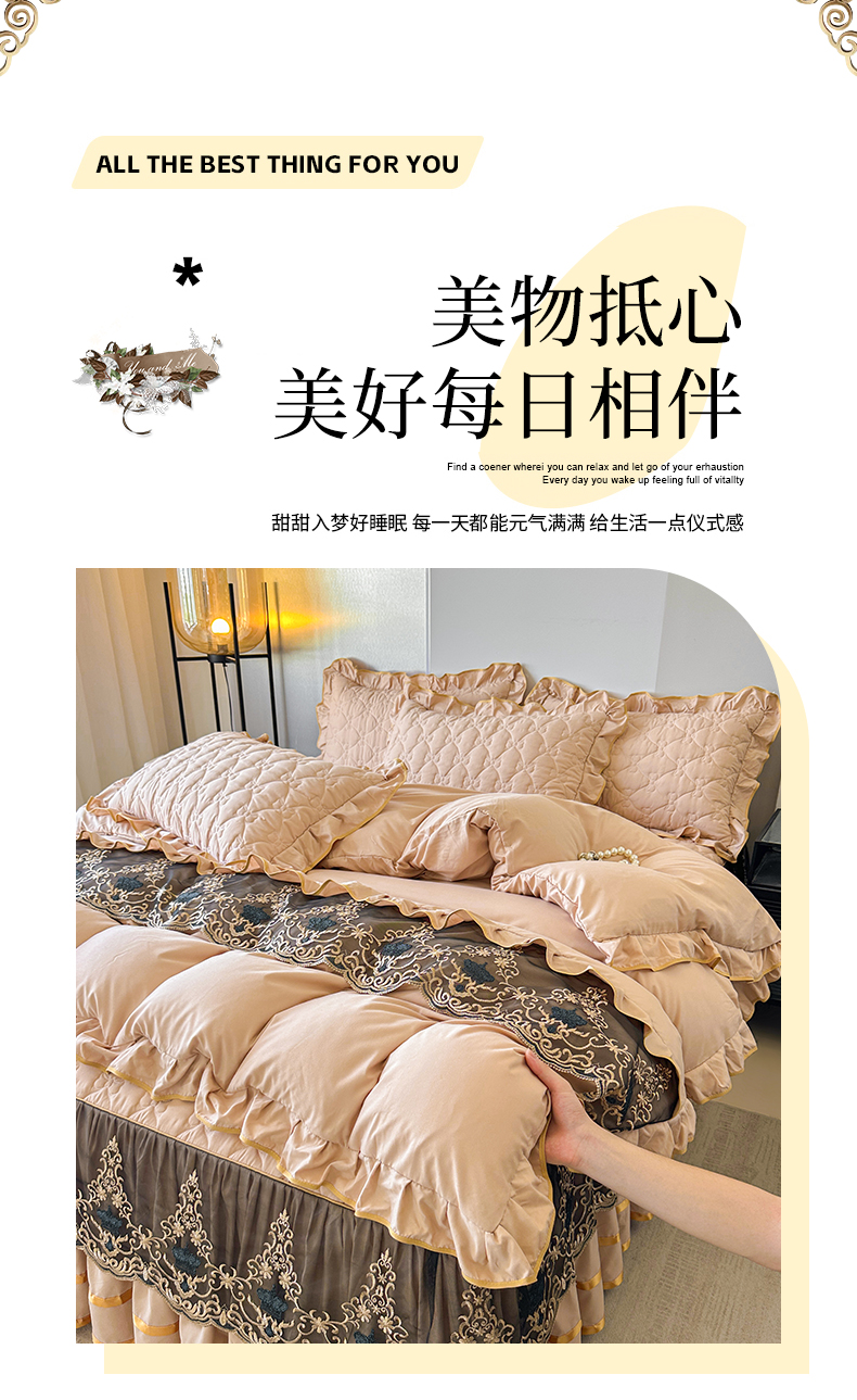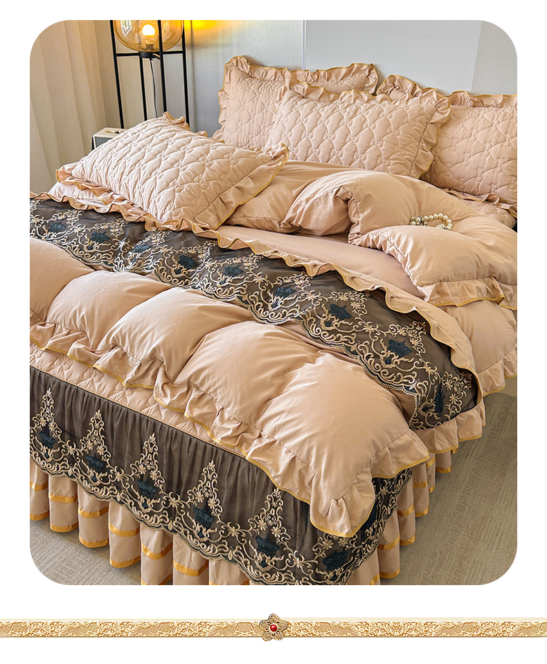 当前位置: 91家纺网 > 商品网购 > 床品套件 > 四件套 > 水洗棉四件套 > 屹成家纺 2025新款水洗棉床裙款四件套-倾城 倾城-卡其