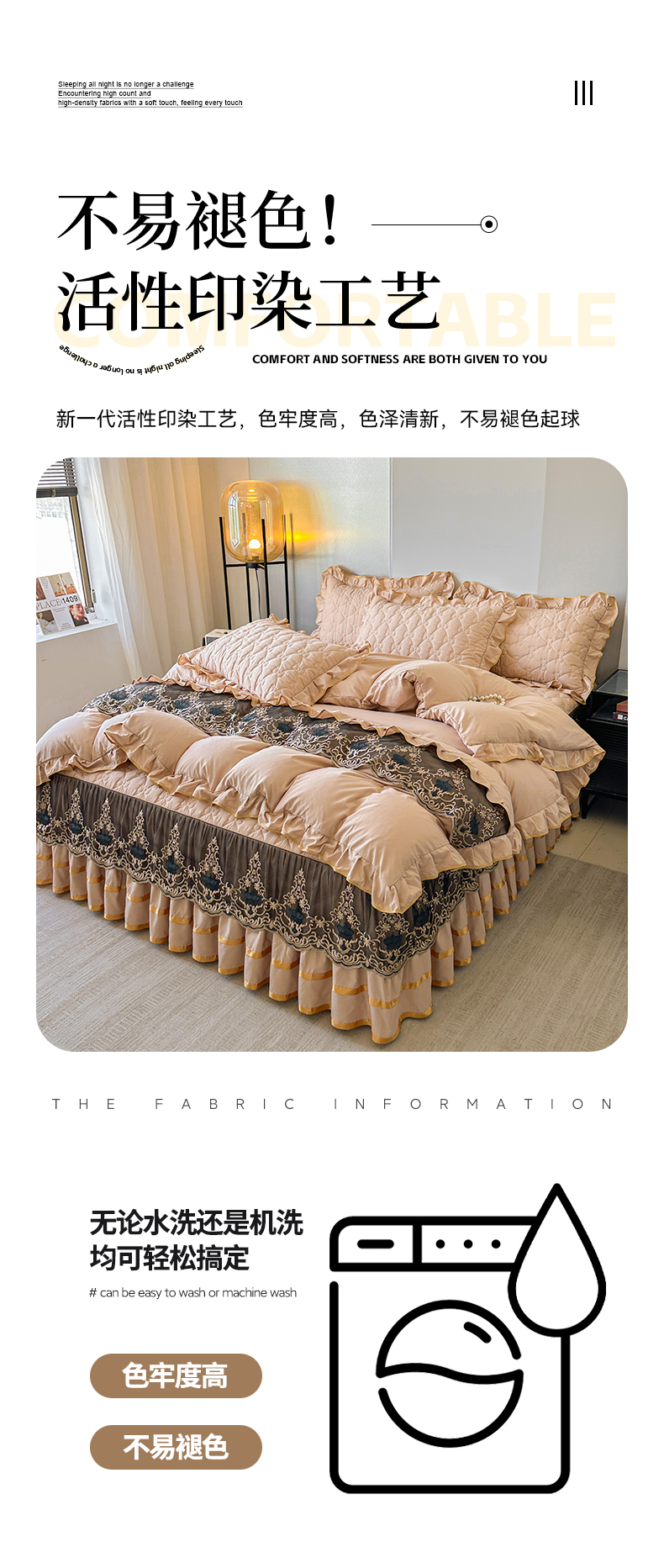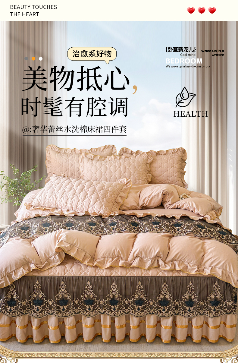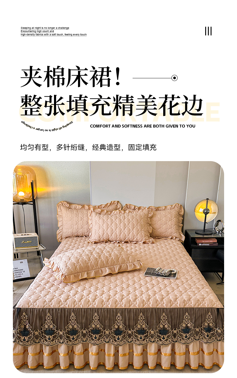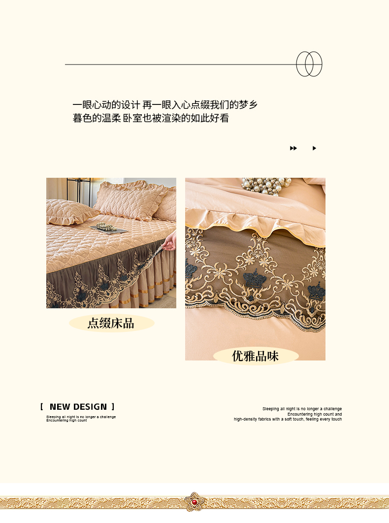当前位置: 91家纺网 > 商品网购 > 床品套件 > 四件套 > 水洗棉四件套 > 屹成家纺 2025新款水洗棉床裙款四件套-倾城 倾城-卡其