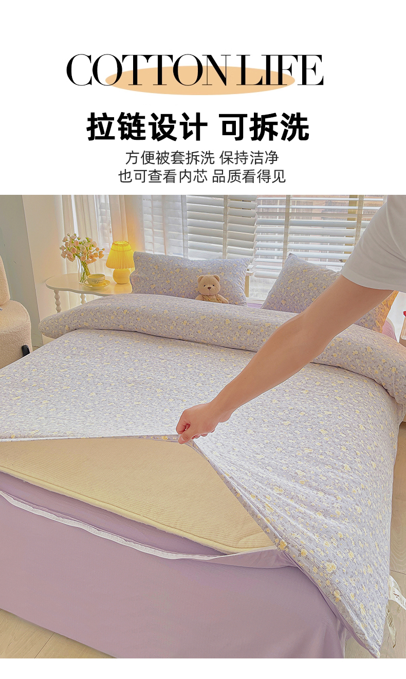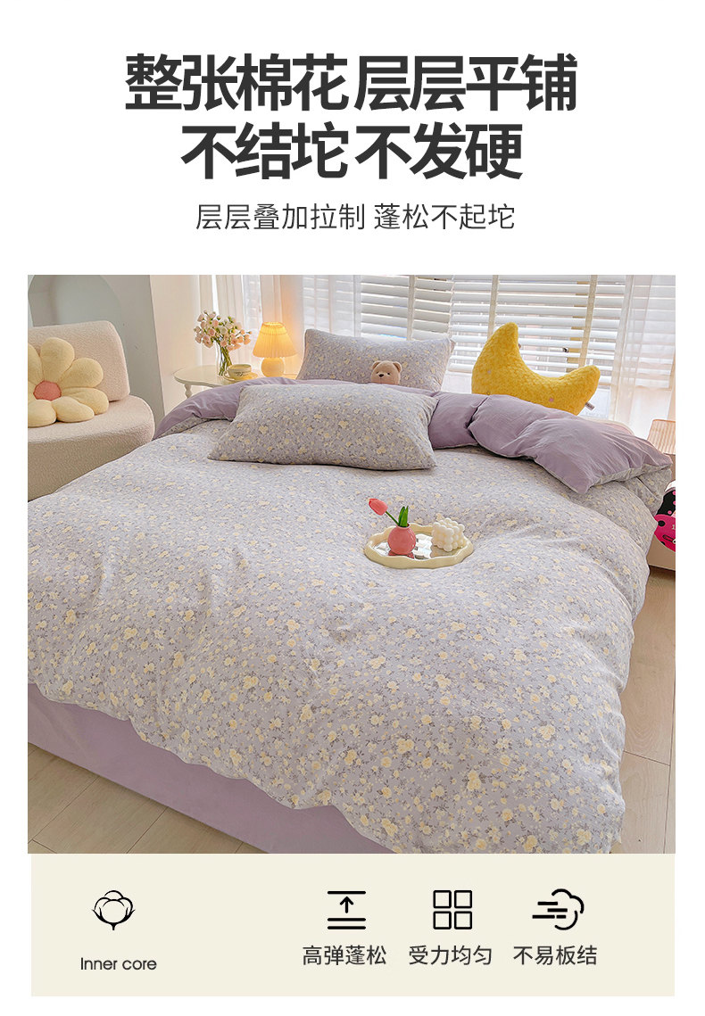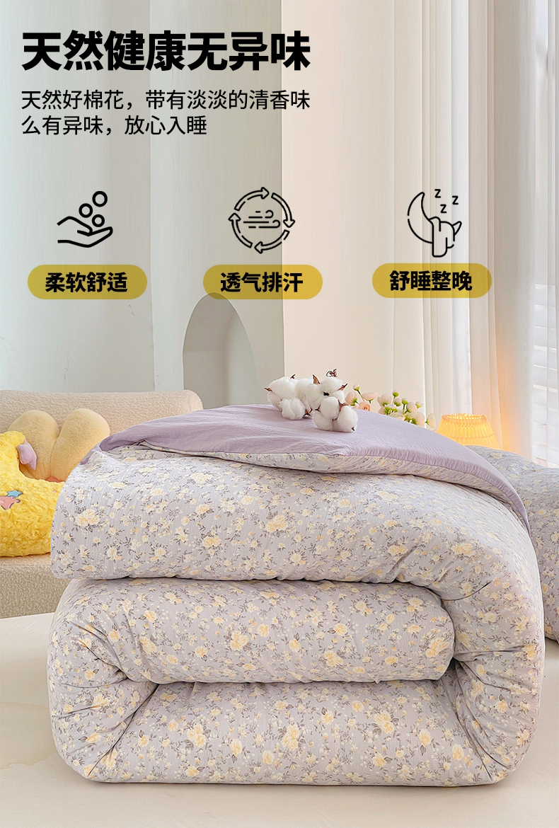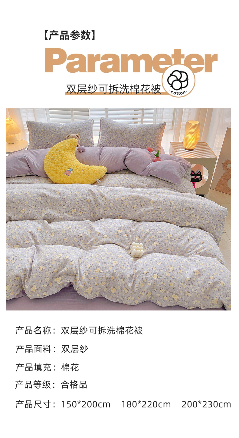 • 91家纺网 家纺一手货源 找家纺 2025新款双层纱可拆洗棉花被 紫薇