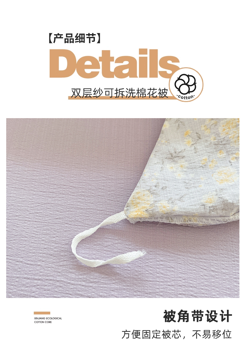 当前位置: 91家纺网 > 商品网购 > 被子 > 棉被 > 2025新款双层纱可拆洗棉花被 紫薇