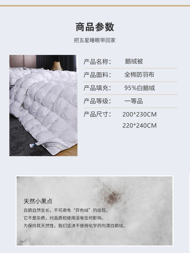 当前位置: 91家纺网 > 商品网购 > 被子 > 羽绒被 > 四川牛皮席 2025新款温暖轻盈东北95白鹅绒被扭花款 200*230-6斤 咖色