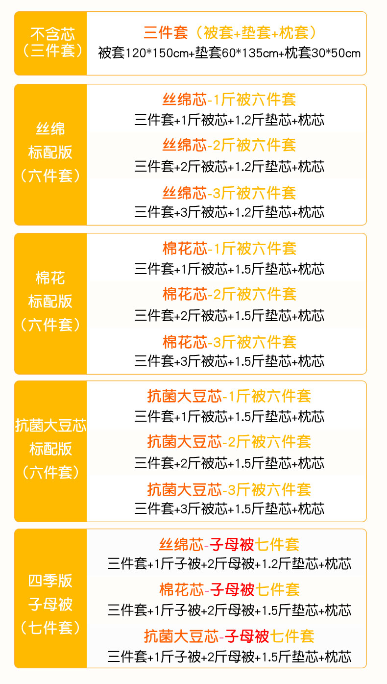 1.5+2.5子母款棉花七件套 | ¥165.00 |