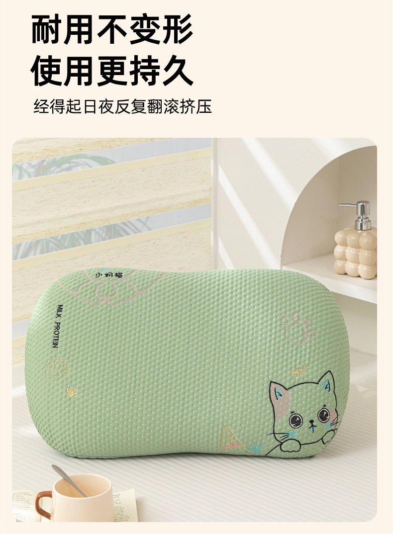 大熊枕芯 2025新款小奶猫慢回弹记忆枕猫肚枕枕头枕芯 小奶猫记忆枕-绿