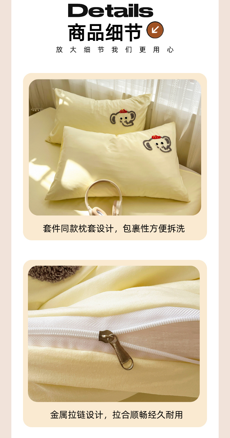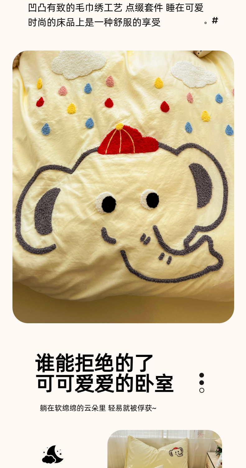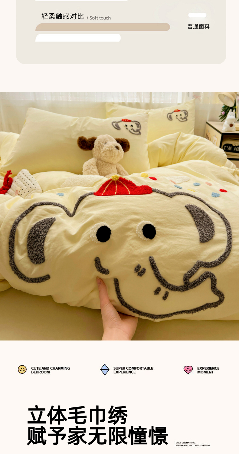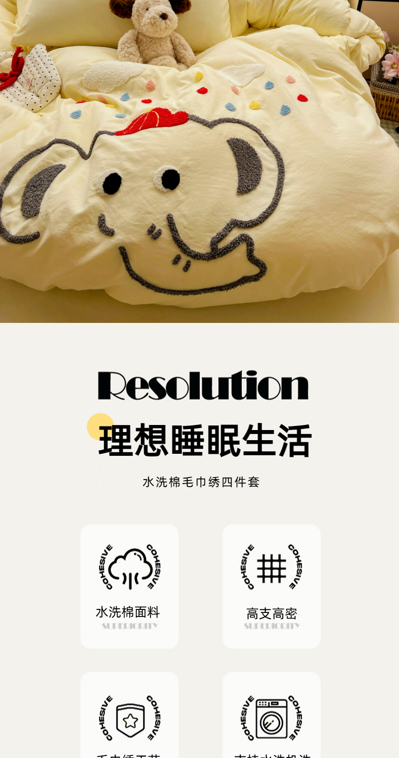 当前位置: 91家纺网 > 商品网购 > 床品套件 > 四件套 > 水洗棉四件套 > 凯洛奇 2025新款软糯水洗棉毛巾绣卡通四件套-奶油小象 奶油小象-黄