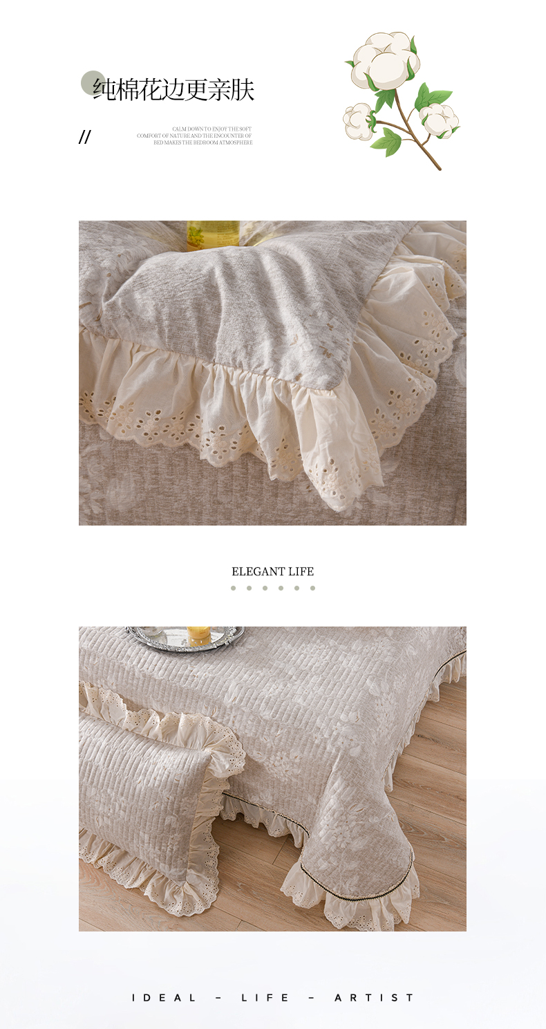 (总)家之硕家纺 2025新款立体雕花可拆洗牛奶绒单床裙系列,爱莎粉,安妮绿,彩虹糖-浅蓝,花韵,秘密花园,田园生活