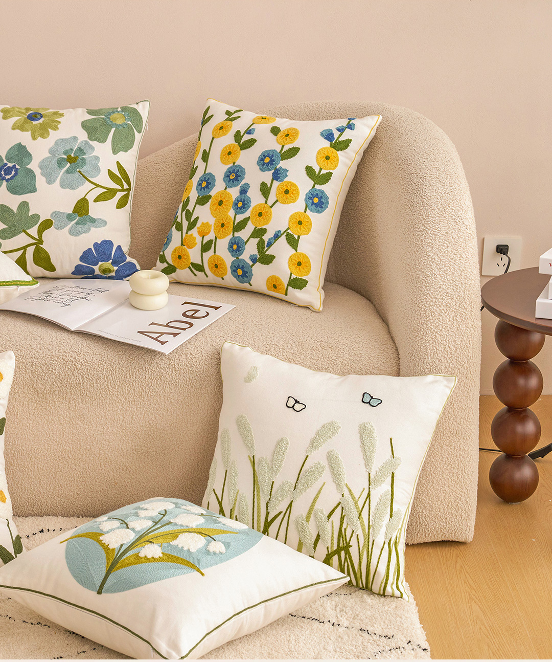 (总)诺可 2025新款全棉毛巾绣抱枕跨境花物语系列,组合,模特图,彩色石,蝶影,繁华拾光,粉蝴蝶,禾穗,花环,花卉-橙,花卉-粉,花雾,花盏,岚山,林礼,绿蝴蝶,蔓藤,木瑾花,南瓜,霓虹,柠檬叶,山奈,石榴蓝,石榴紫,树叶,禧朵,夏日铃兰,向阳花,星葵,叶坊,雨棠,枝瑾,紫蝴蝶,紫蕊,磨毛布单抱枕芯