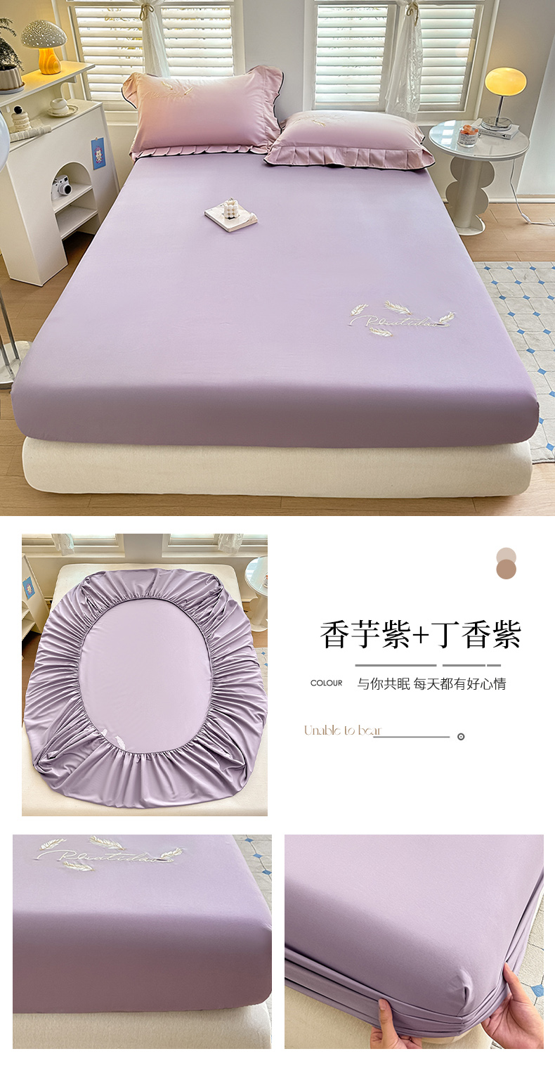 柔享家(原芷澜家纺) 2025新款法式纯色水洗棉刺绣绣花磨毛床笠汇总(有同款四件套) 香芋紫+丁香紫
