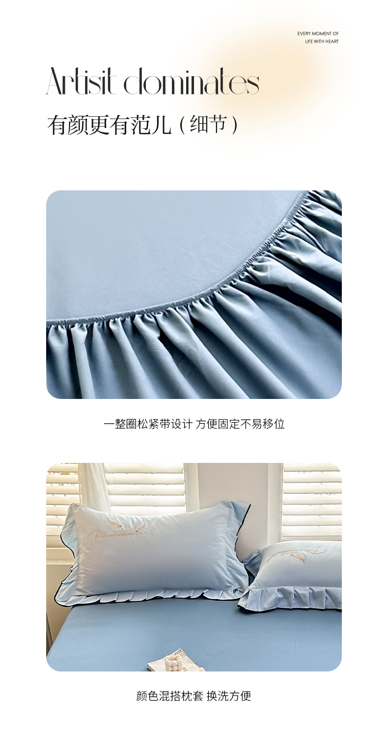 (总)柔享家 2025新款法式花边蕾丝床裙床笠床单水洗棉磨毛四件套-恩格斯,藏蓝+天际蓝,豆沙+浅灰,粉玉+嫩绿,米黄+粉玉,嫩绿+米黄,浅灰+浅灰,天际蓝+宝石蓝,丁香紫+香芋紫