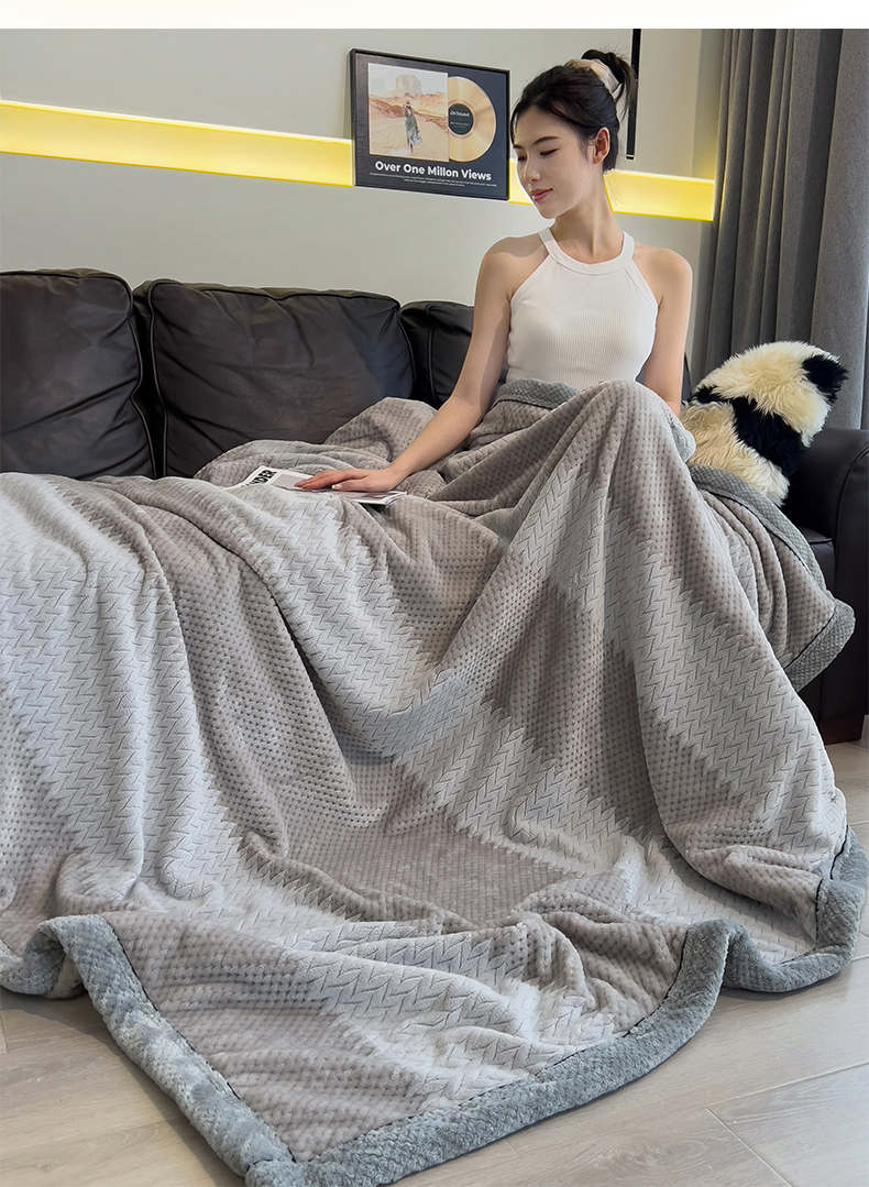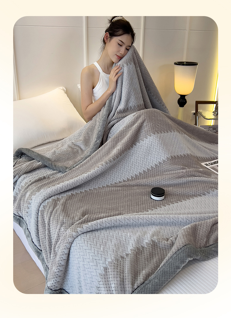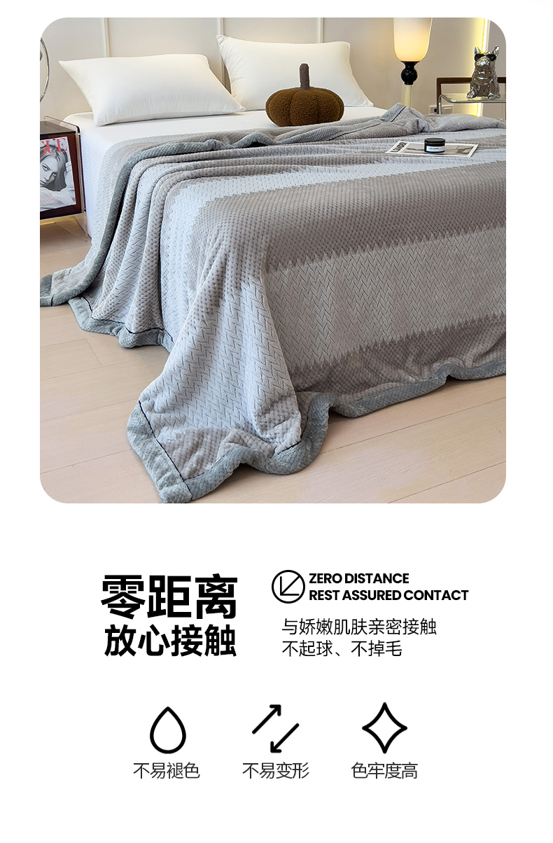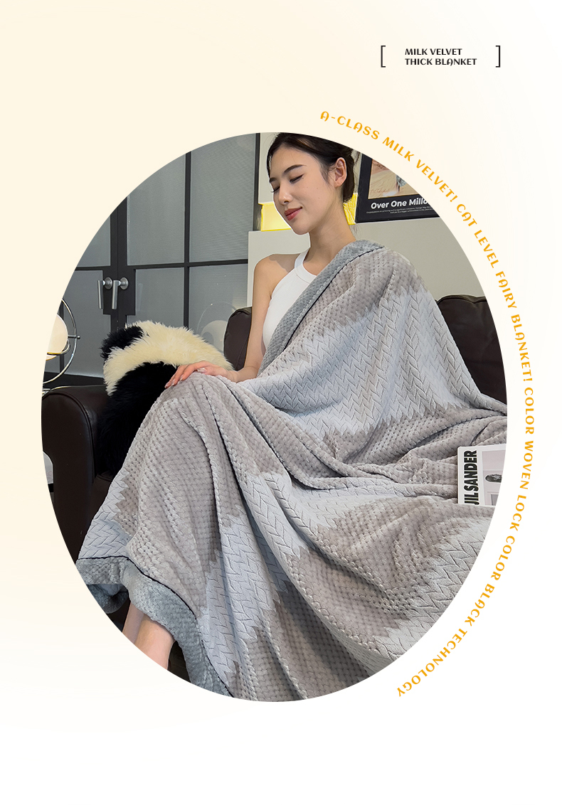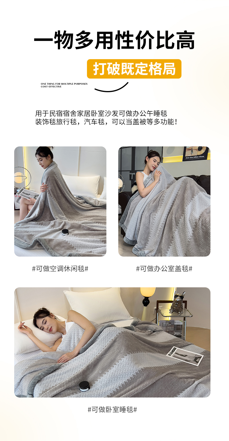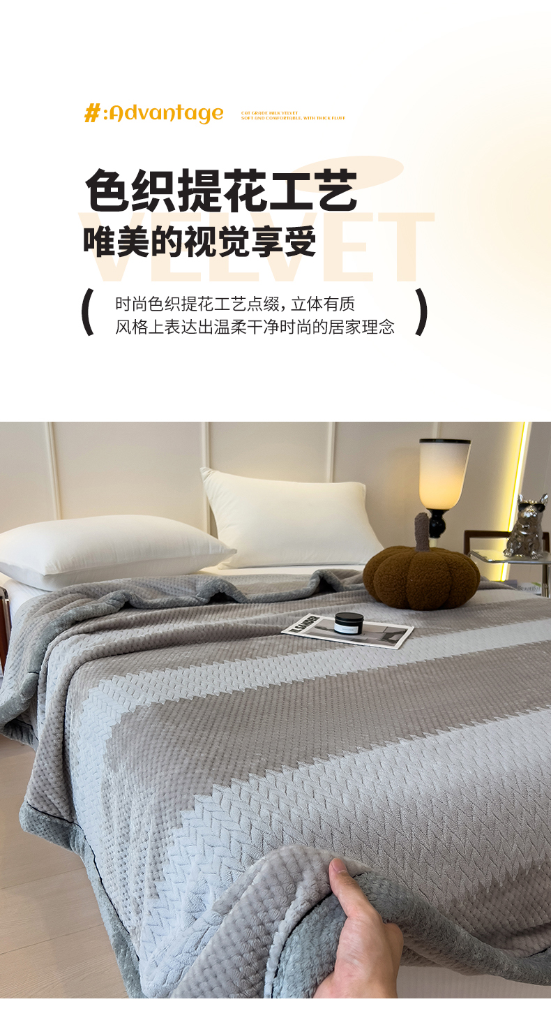 商品名称:世纪绒品 2025新款A类撸猫色织牛奶绒多功能毛毯 艾森-浅灰