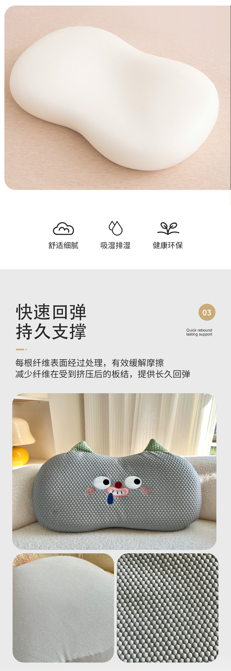 商品名称:诺可 2025新款凉感凉豆豆记忆枕猫肚枕枕头枕芯-小怪兽 绿色