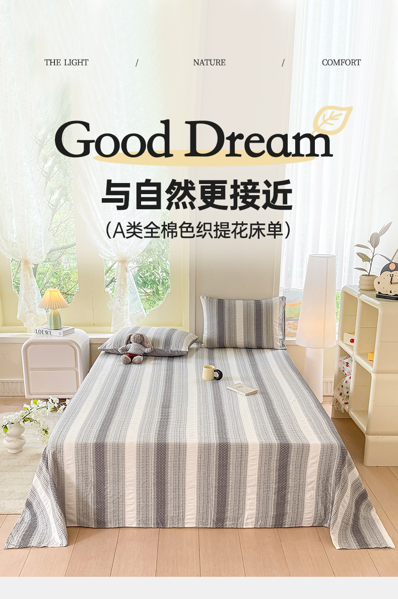 灰鲸 2025新款全棉色织提花单品床单 泛歌-灰
