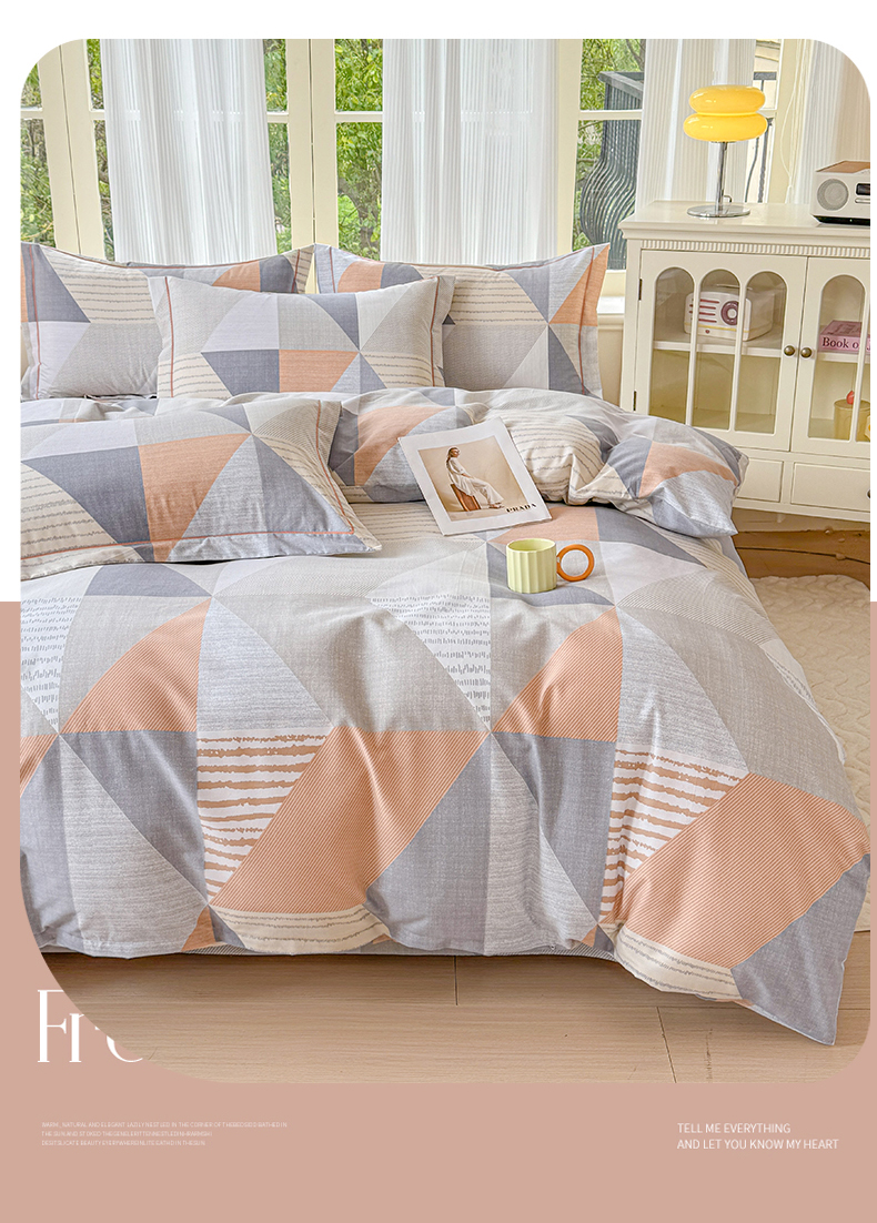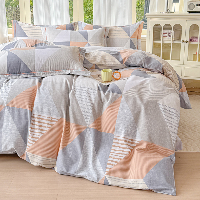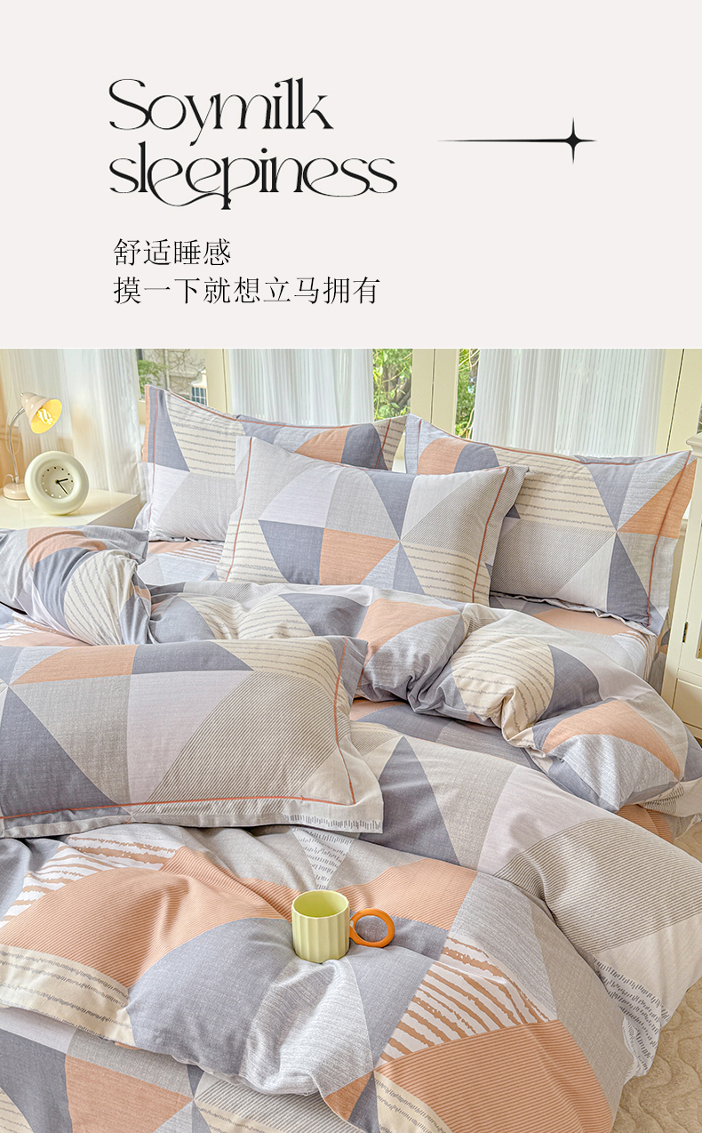 铭浩 2025新款纯棉棉加厚磨毛升级喷气面料全棉四件套三件套创意几何-桔