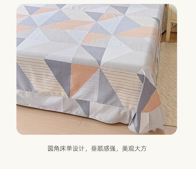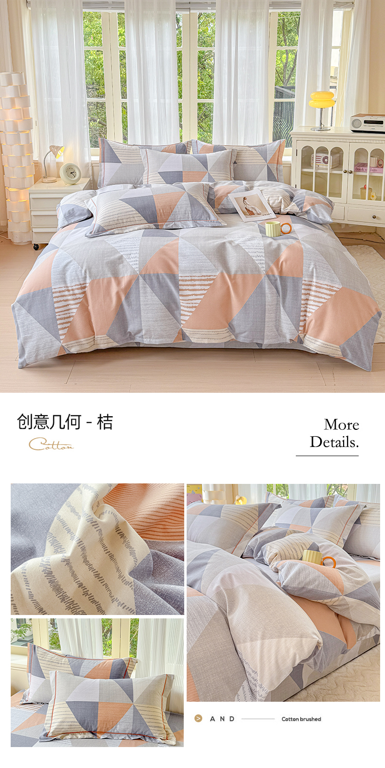 商品名称:铭浩 2025新款纯棉棉加厚磨毛升级喷气面料全棉四件套三件套创意几何-桔