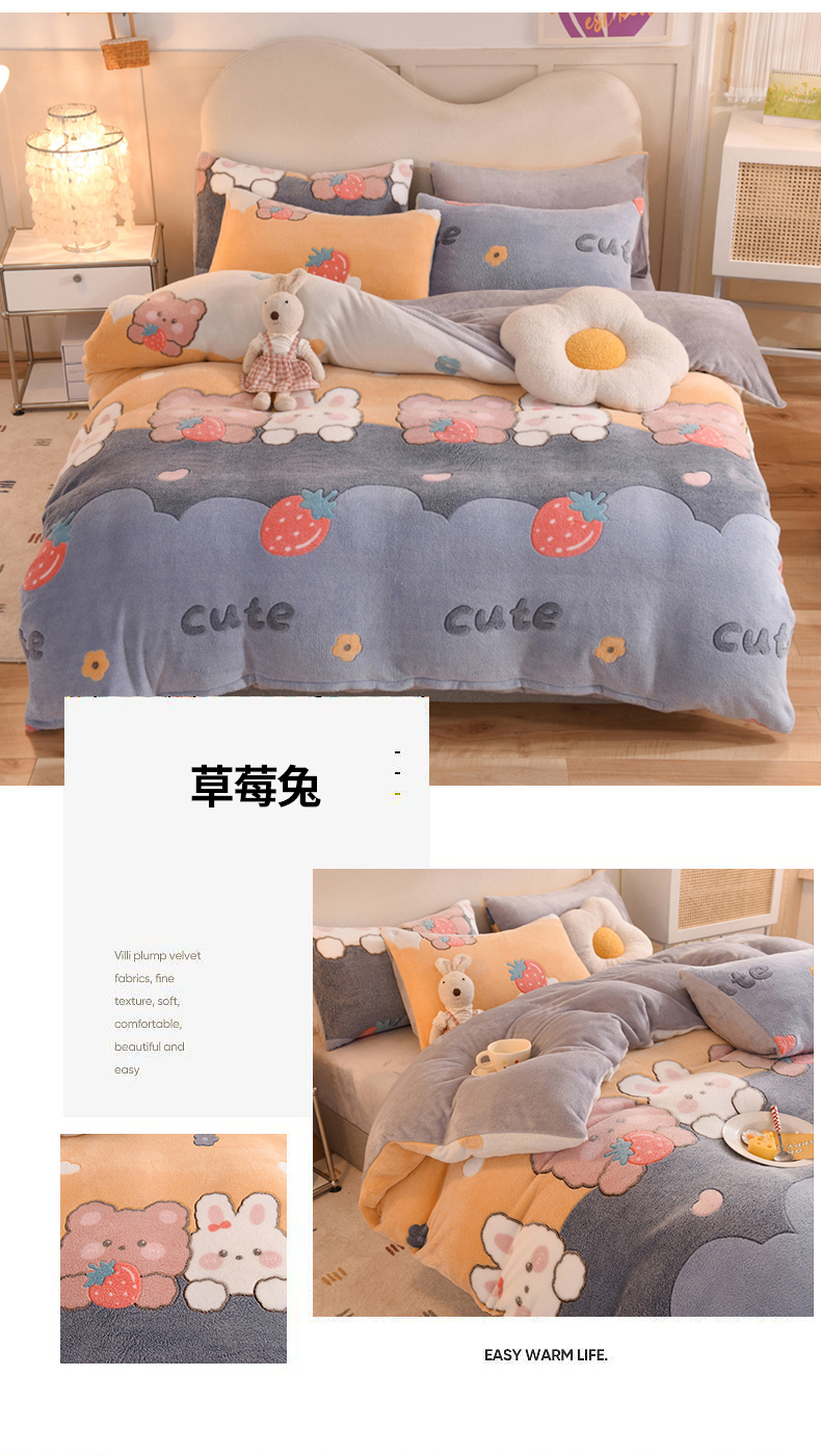 商品名称:慕梵家居2025新款雪花绒被套 草莓兔