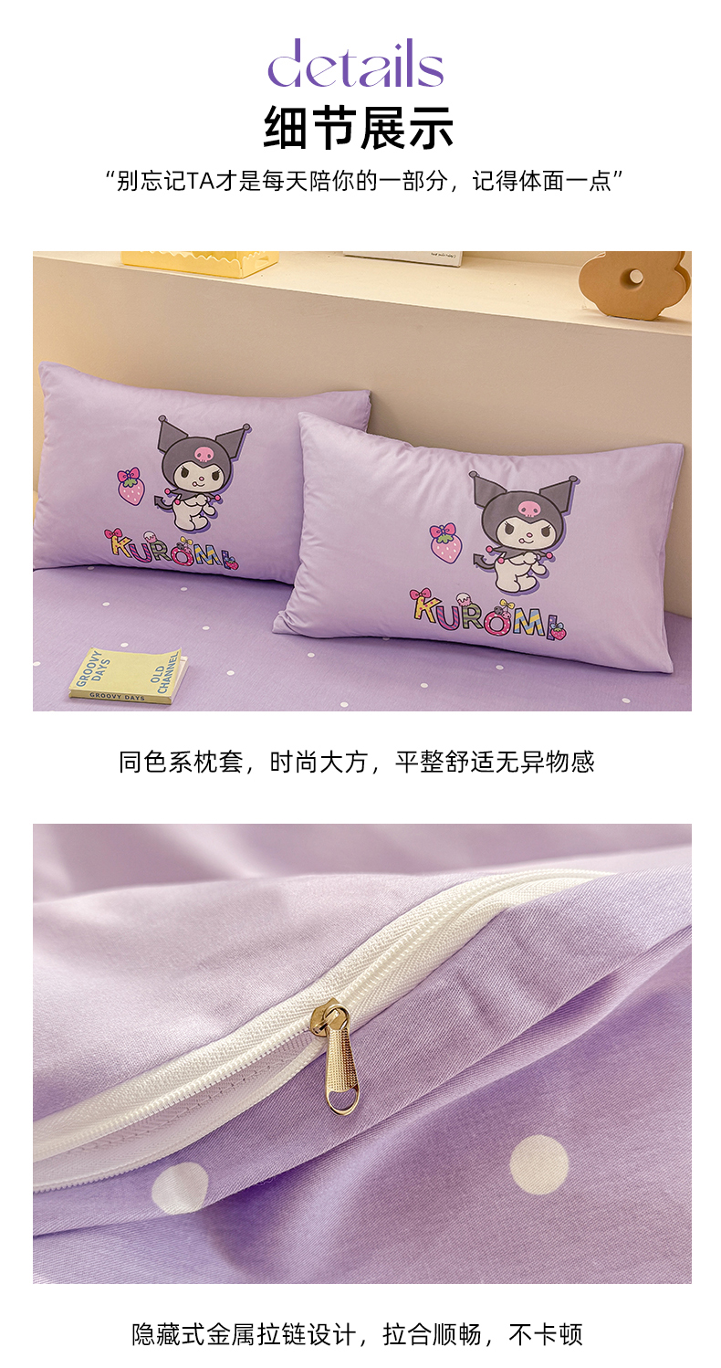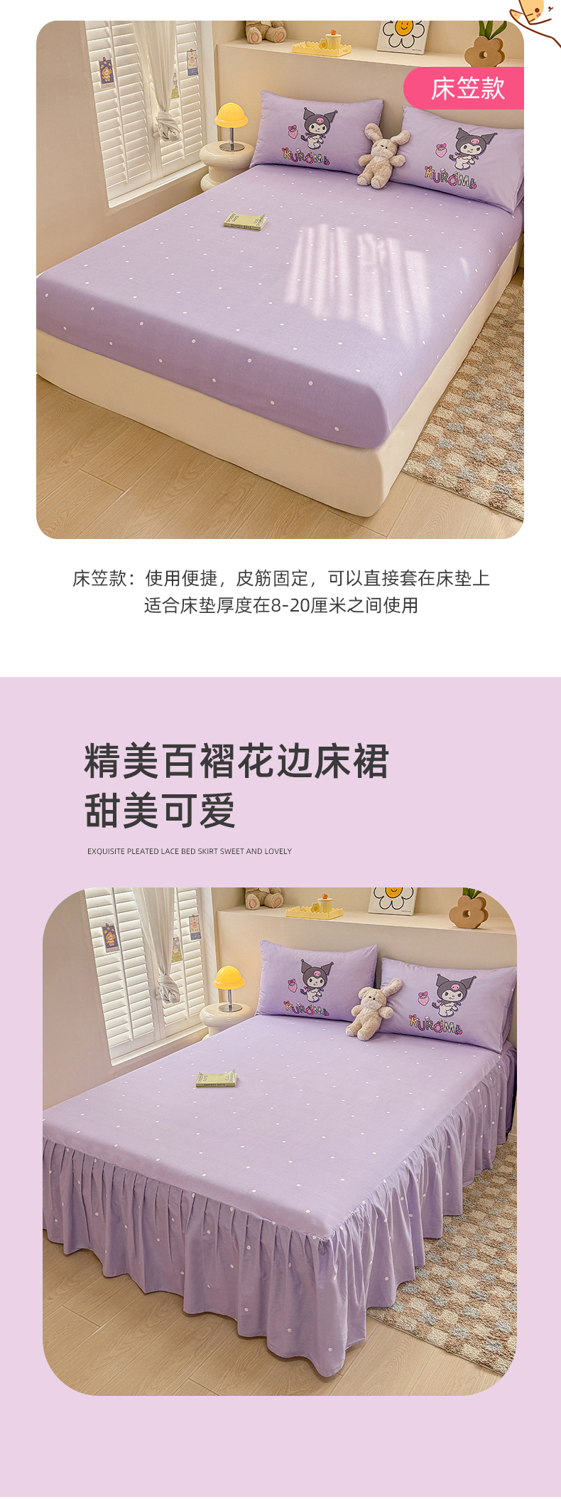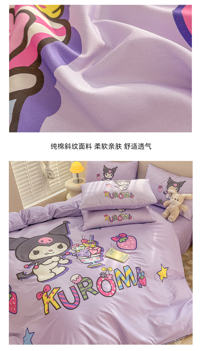 当前位置: 91家纺网 > 商品网购 > 床品套件 > 四件套 > 全棉普通四件套 > 玉元坊 2025新款大版三丽鸥系列全棉纯棉床单纯棉床裙三四件套简约款 草莓库洛米