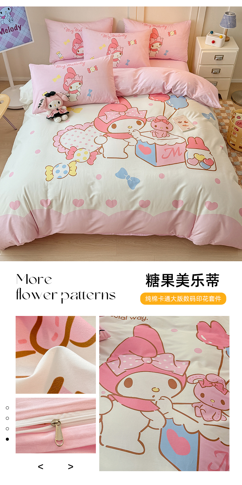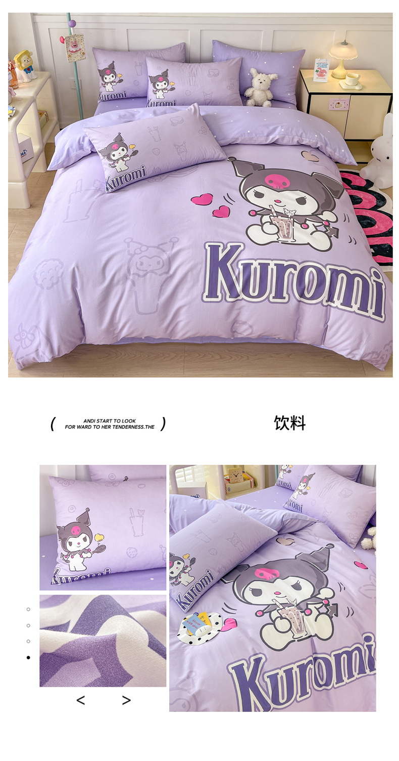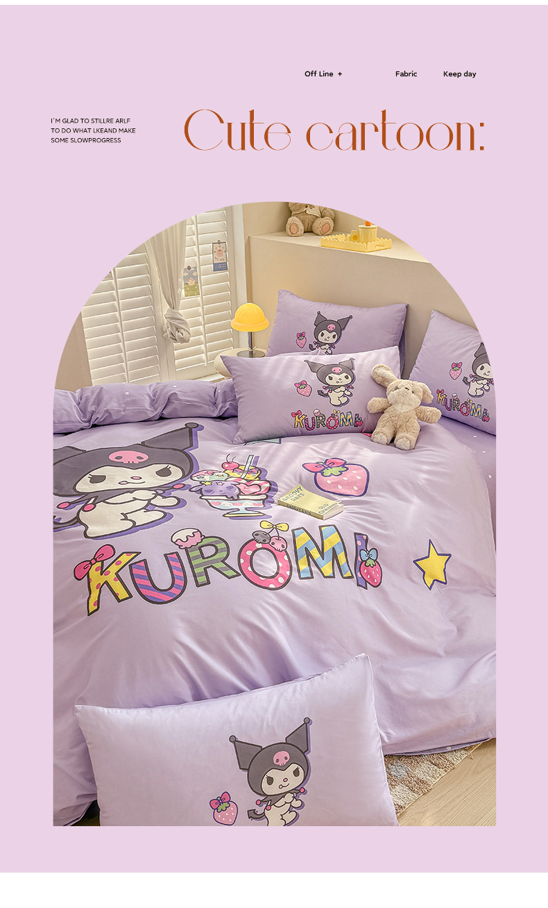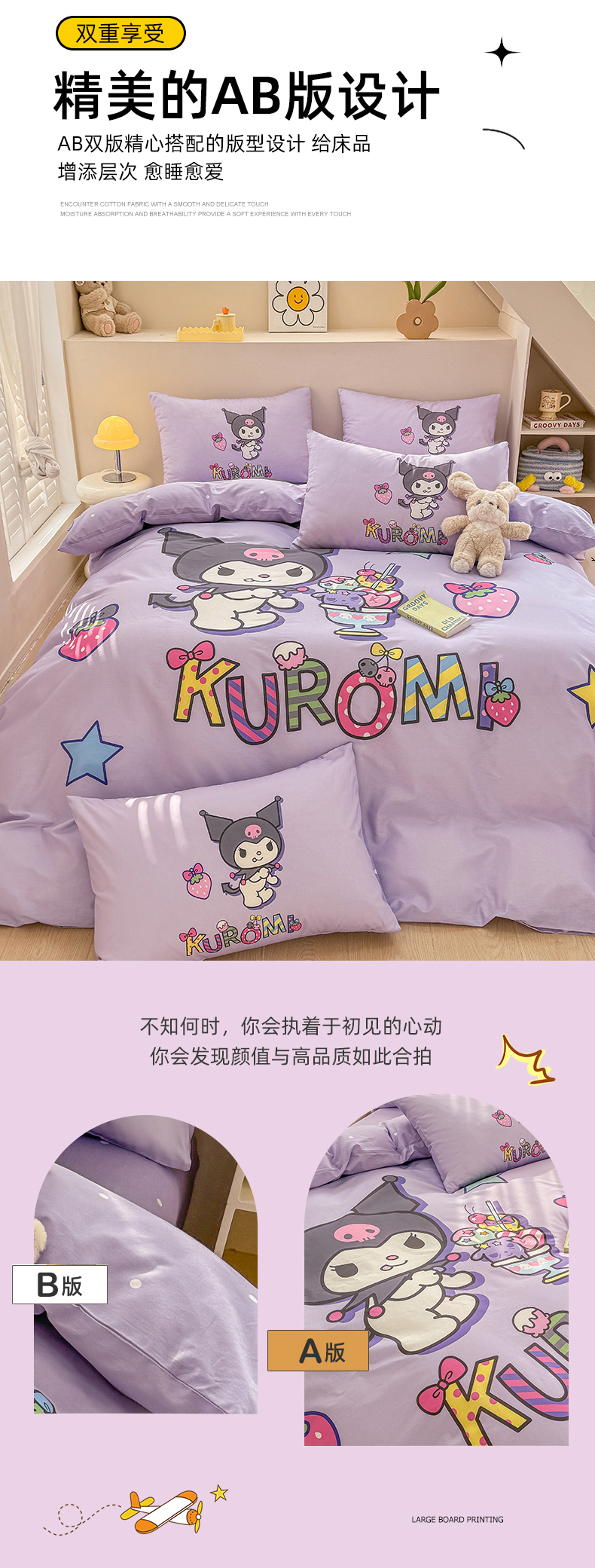 当前位置: 91家纺网 > 商品网购 > 床品套件 > 四件套 > 全棉普通四件套 > 玉元坊 2025新款大版三丽鸥系列全棉纯棉床单纯棉床裙三四件套简约款 草莓库洛米